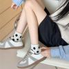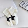 Calcetines de mujer Primavera/Verano 2024 nuevos negro y blanco estrella de cinco puntas lunares pequeños media pantorrilla algodón calcetines casuales de mujer