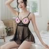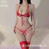 Traje de tres puntos de encaje sexy de Ji Feiman para mujer, ropa interior sexy de pecho pequeño con deseo puro, pijama abierto de pasión caliente