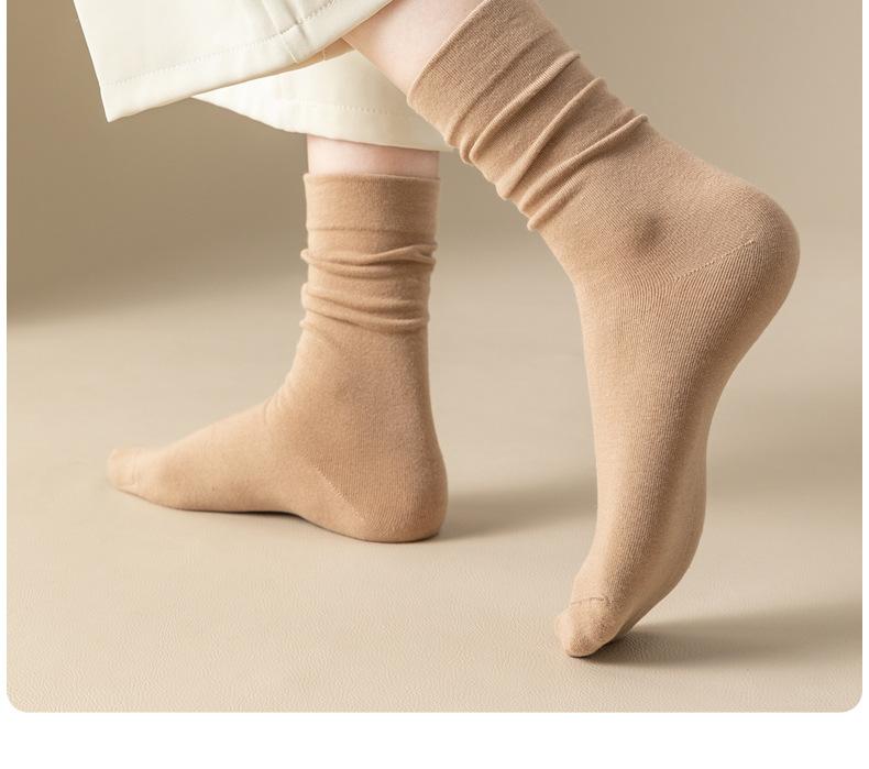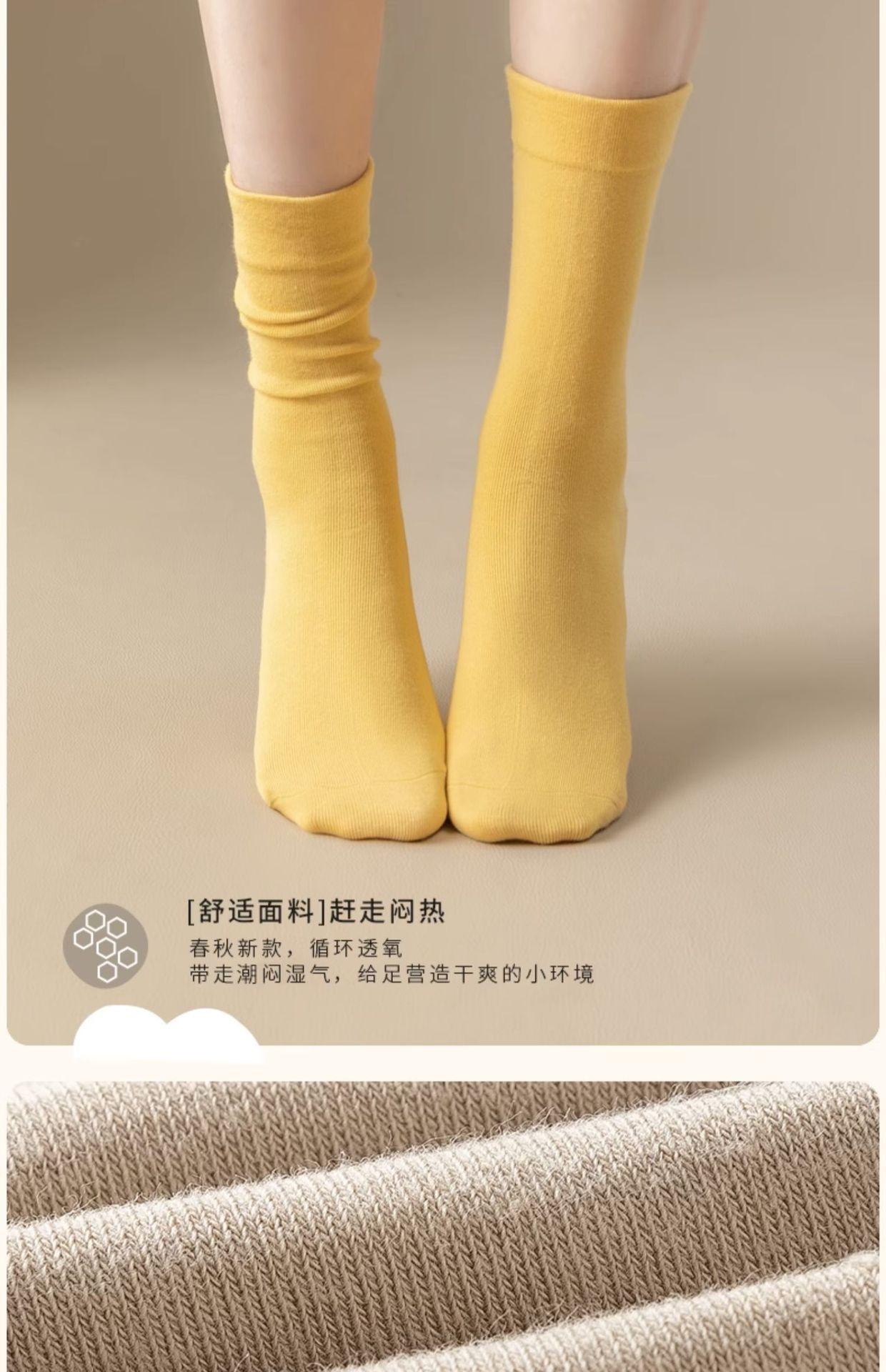Calcetines de Algodón Puro Sin Costuras hasta Media Pantorrilla Antiolor para Primavera y Otoño para Mujer, Color Sólido, Versátiles, Casuales, Venta al Mayoreo