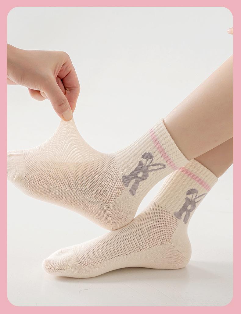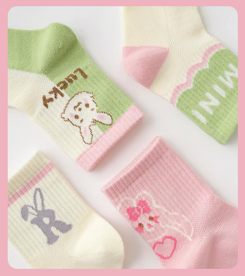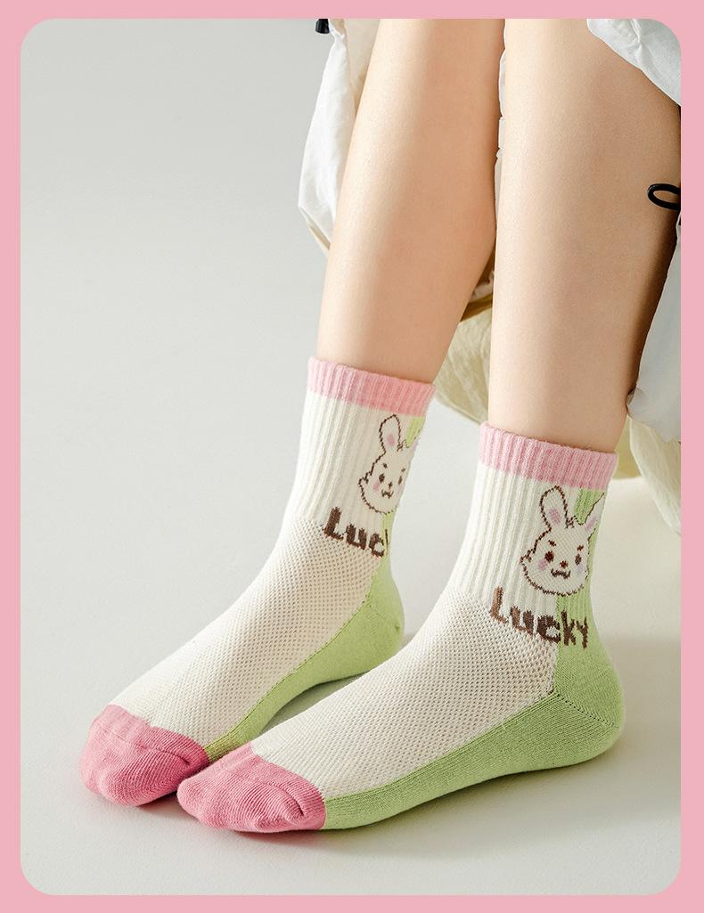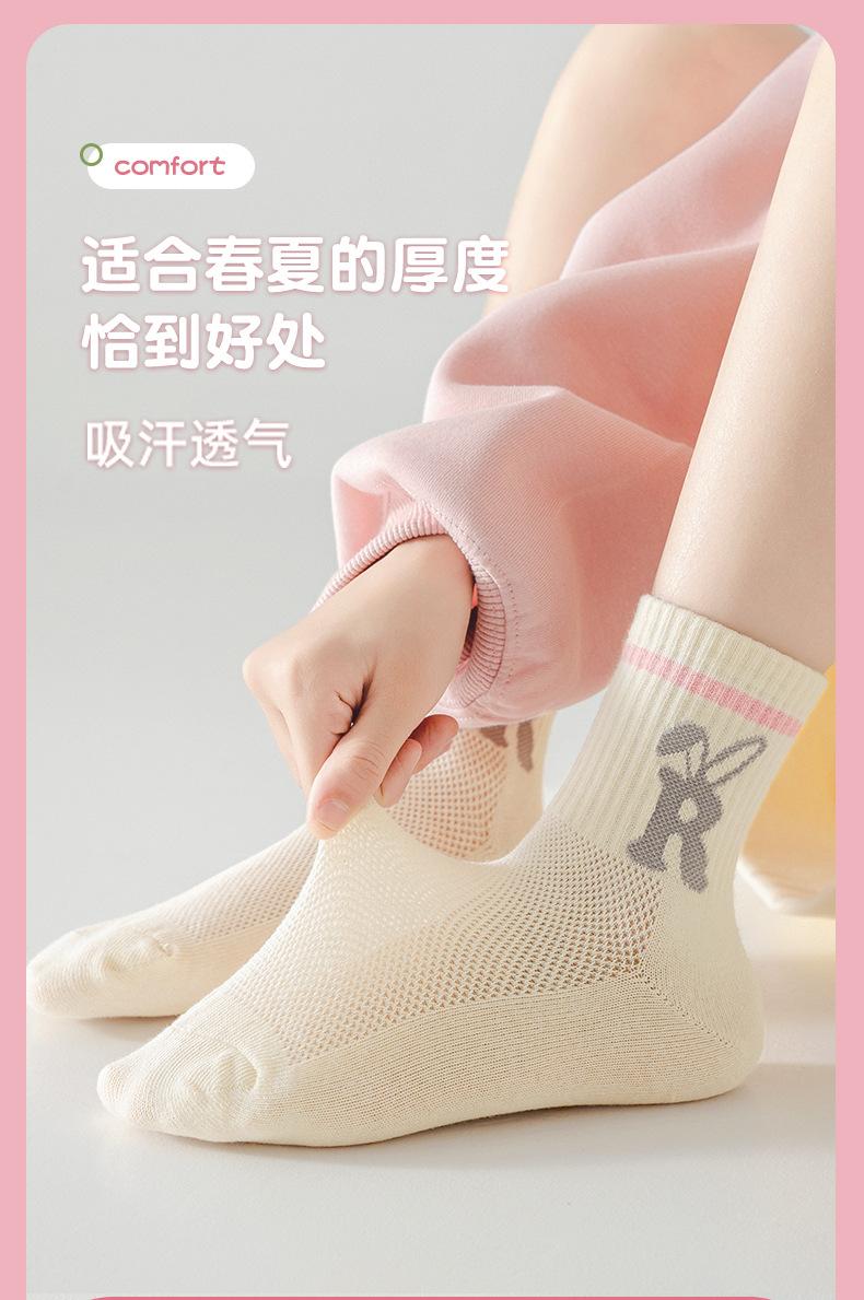 Calcetines para niños, primavera y verano, calcetines finos de algodón, venta al por mayor, lindos calcetines de conejo para niños medianos y grandes, calcetines de malla transpirables, calcetines de media pantorrilla para niñas