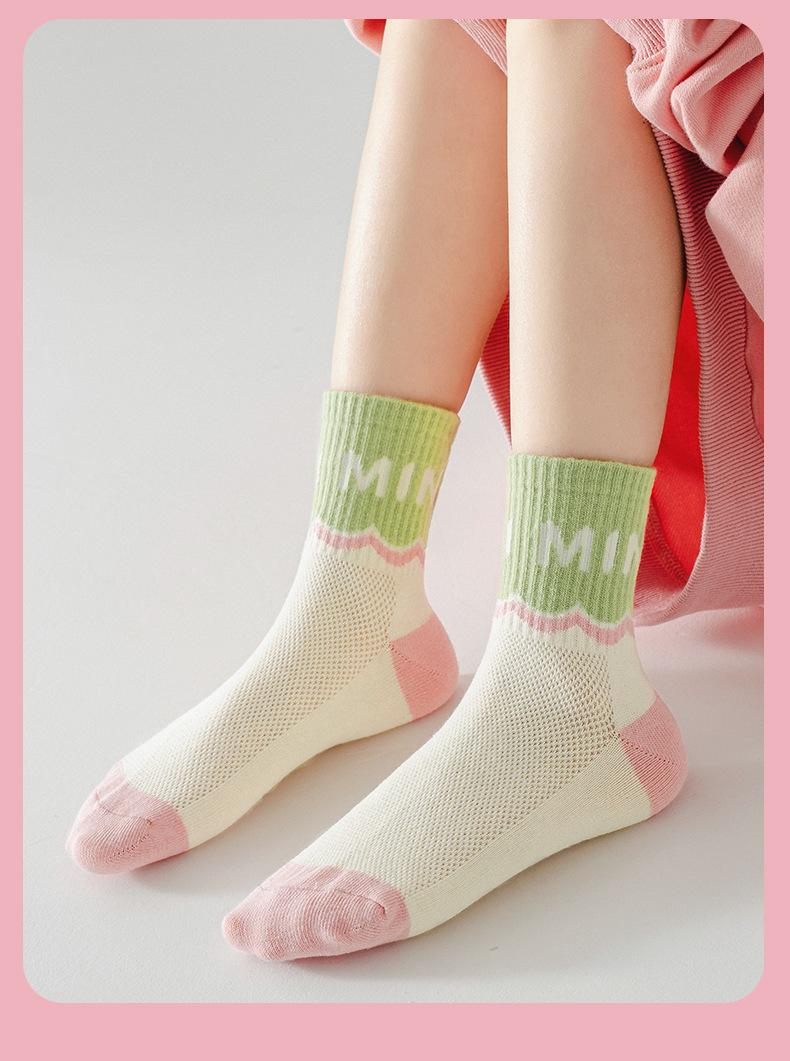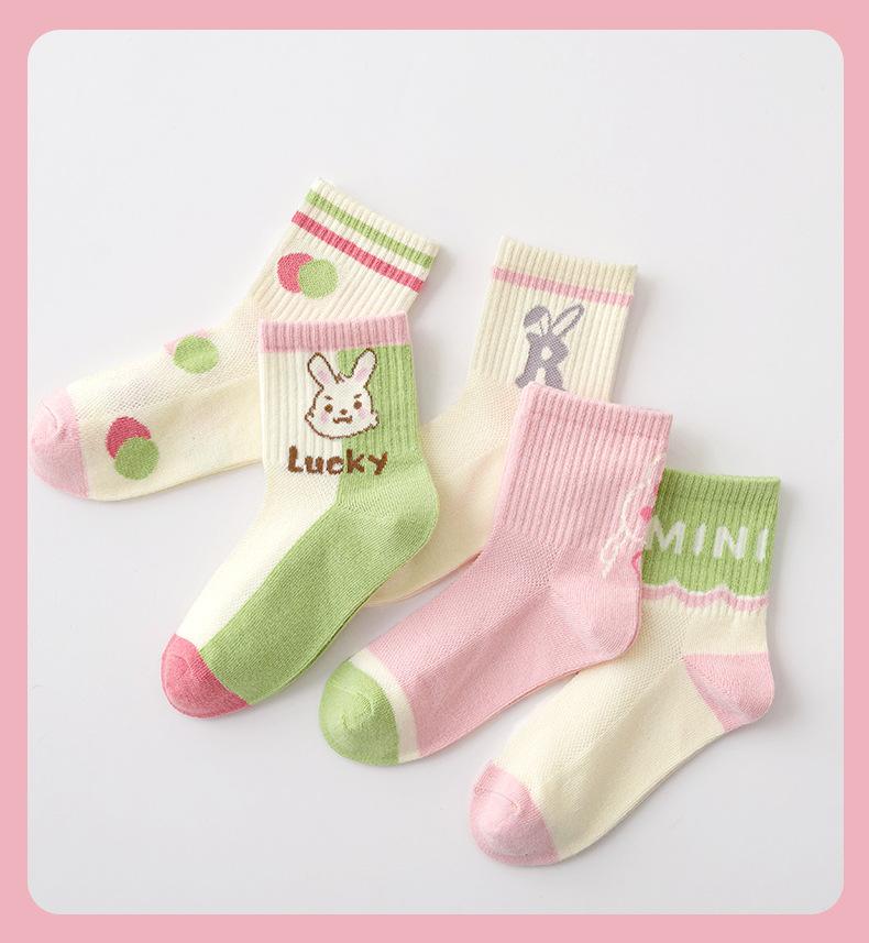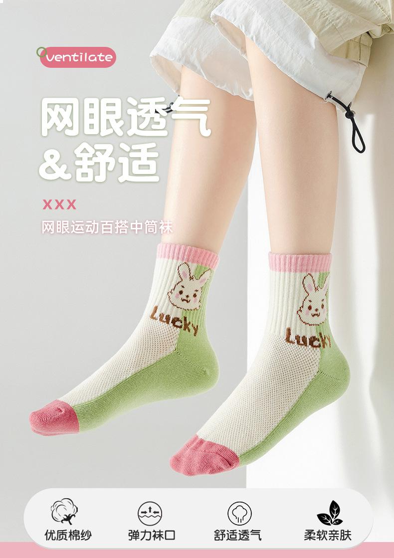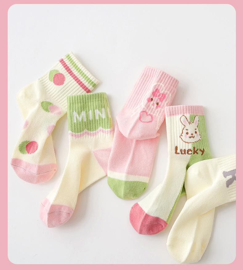 Calcetines para niños, primavera y verano, calcetines finos de algodón, venta al por mayor, lindos calcetines de conejo para niños medianos y grandes, calcetines de malla transpirables, calcetines de media pantorrilla para niñas