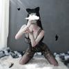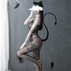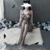 Lencería sexy con tirantes, medias de malla de una pieza, abiertas, huecas, negras, de jacquard, w062