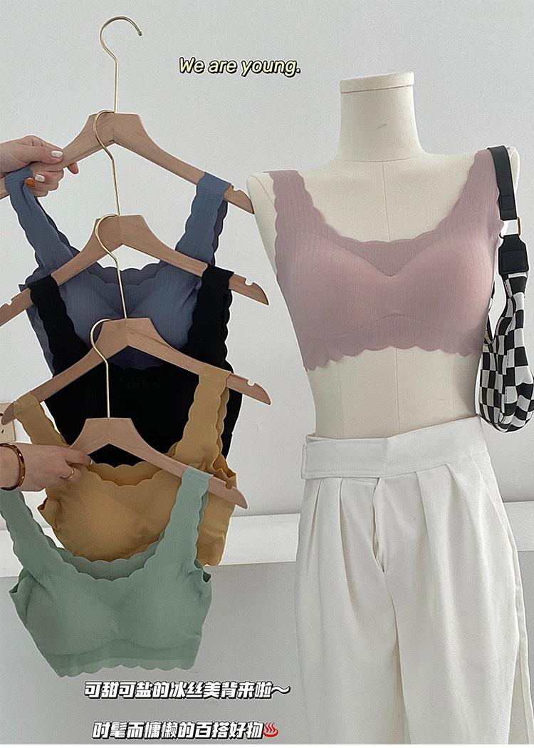 Compra Camisola de una pieza sin costuras de seda de hielo de verano con hermosa espalda envuelta en el pecho, ropa interior para niña, sujetador transpirable anti-luz al por mayor en Joom.pro