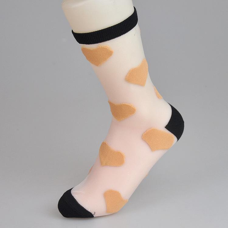 Compra Calcetines ultrafinos de seda de cristal vintage de verano para mujer, calcetines sexys coreanos de jacquard con forma de corazón, calcetines ultrafinos de seda transparente de verano. al por mayor en Joom.pro