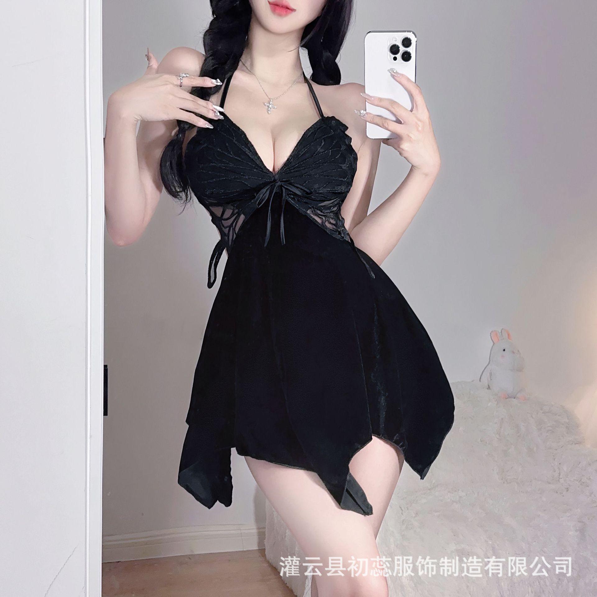Compra Ropa interior sexy, camisón de tentación con espalda descubierta y perspectiva de malla con cuello de mariposa, traje uniforme puro deseo al por mayor en Joom.pro