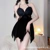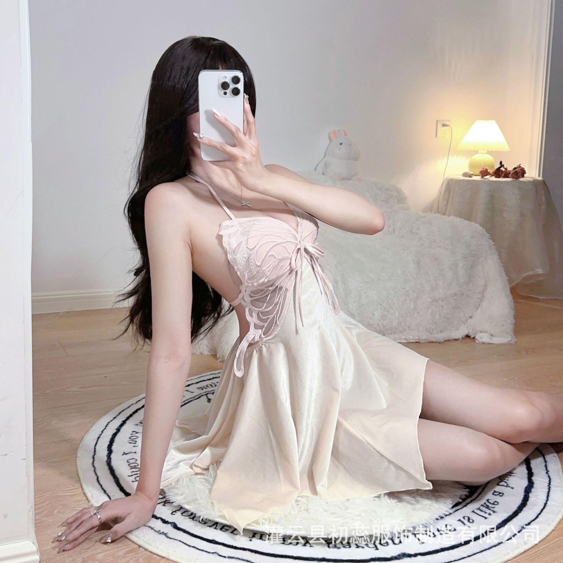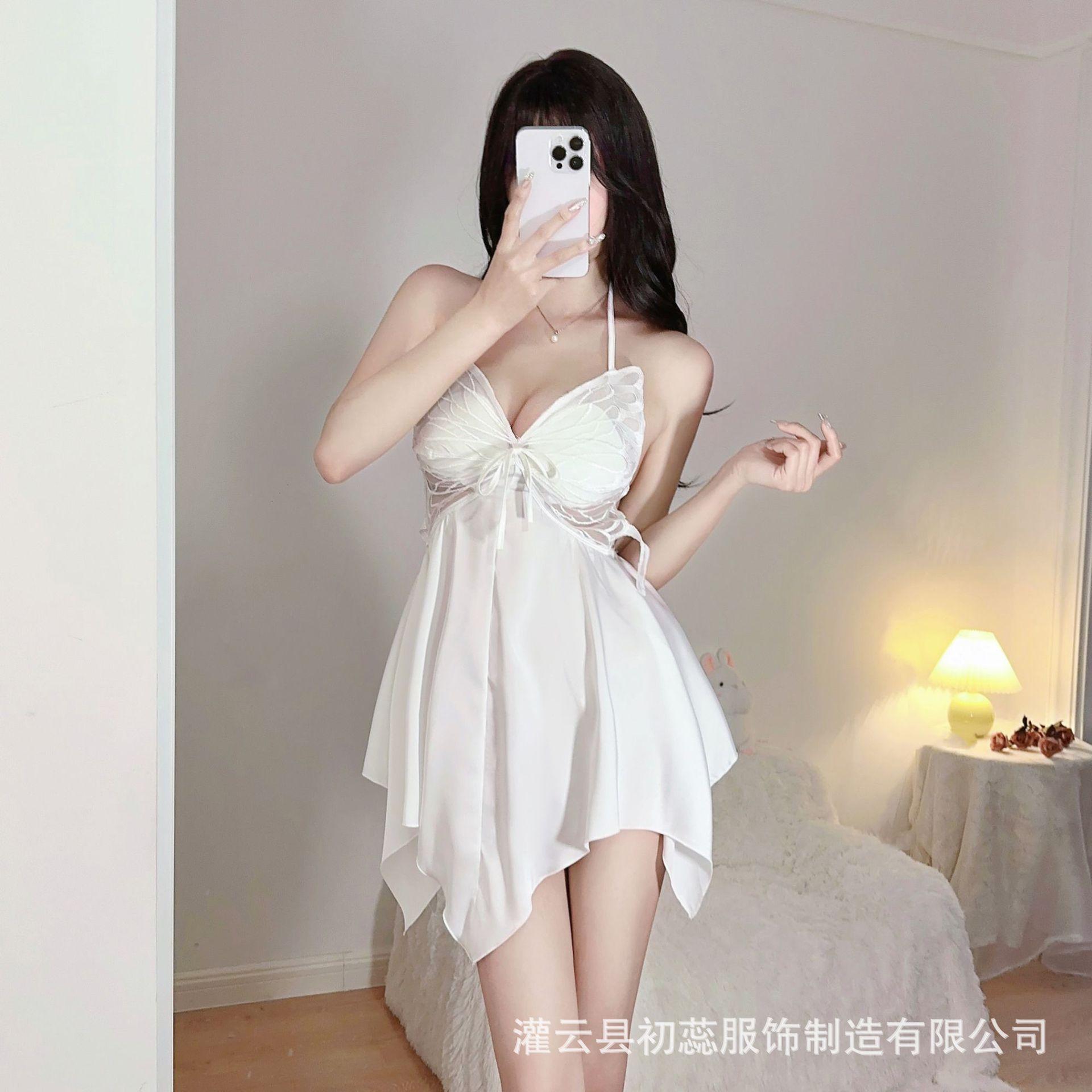 Ropa interior sexy, camisón de tentación con espalda descubierta y perspectiva de malla con cuello de mariposa, traje uniforme puro deseo