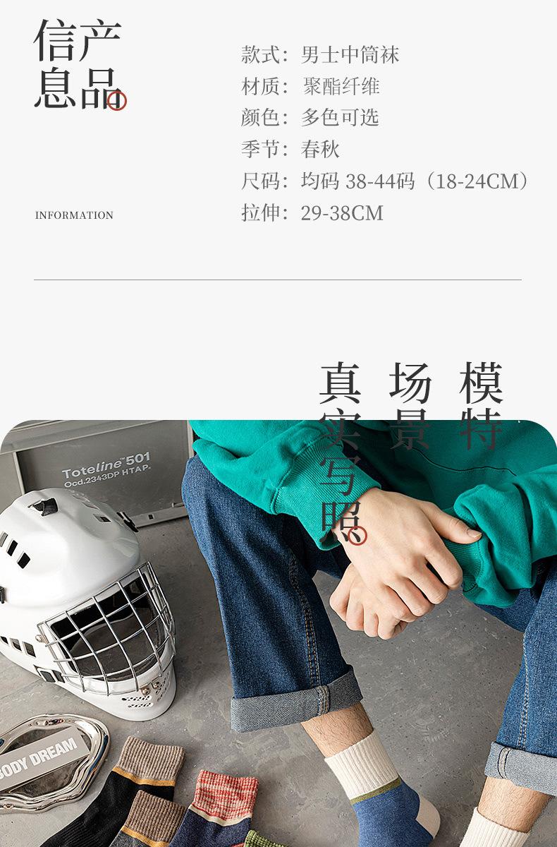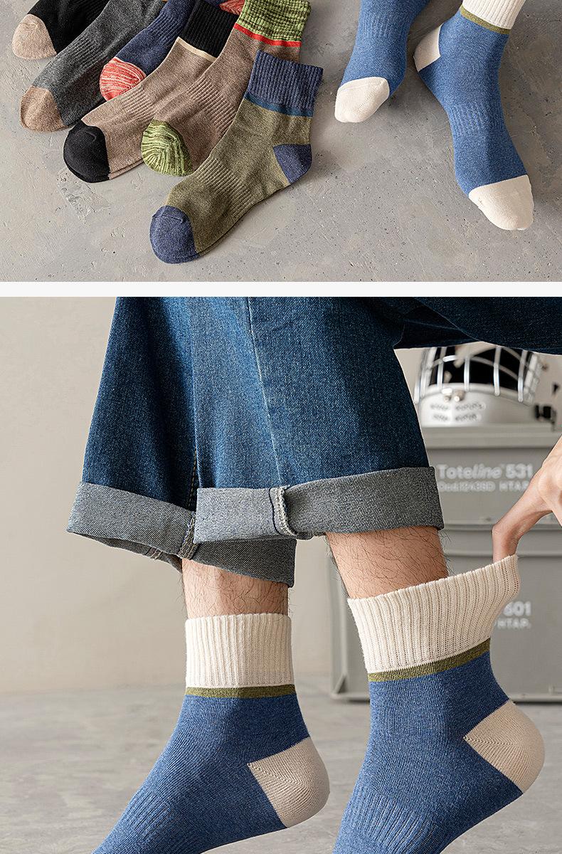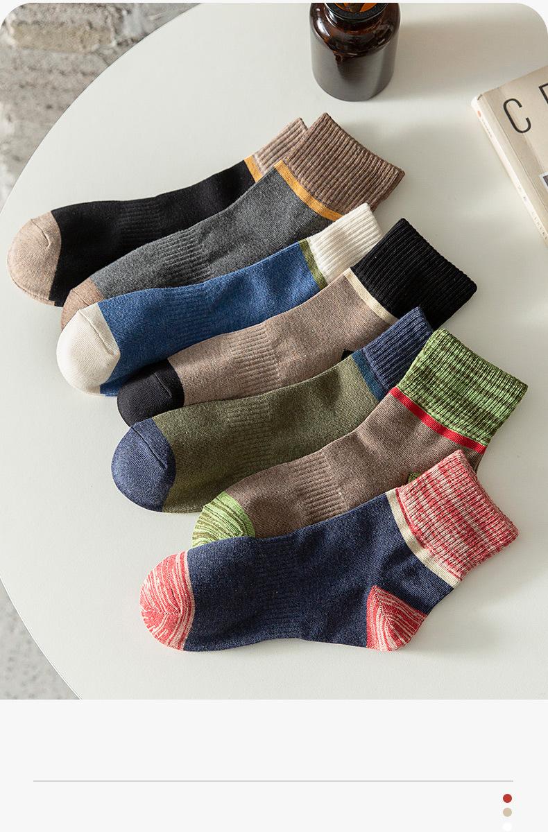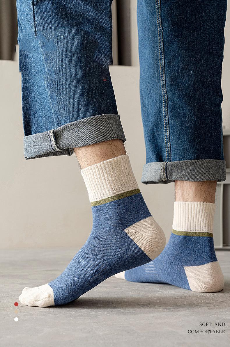 Calcetines Zhuji para Hombre de Media Caña Absorbe Humedad Primavera y Otoño Bloque de Color Transpirables Deportes Otoño e Invierno Tendencia Ins