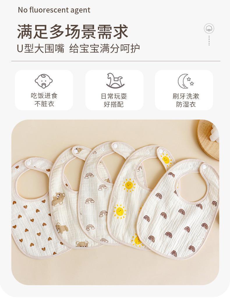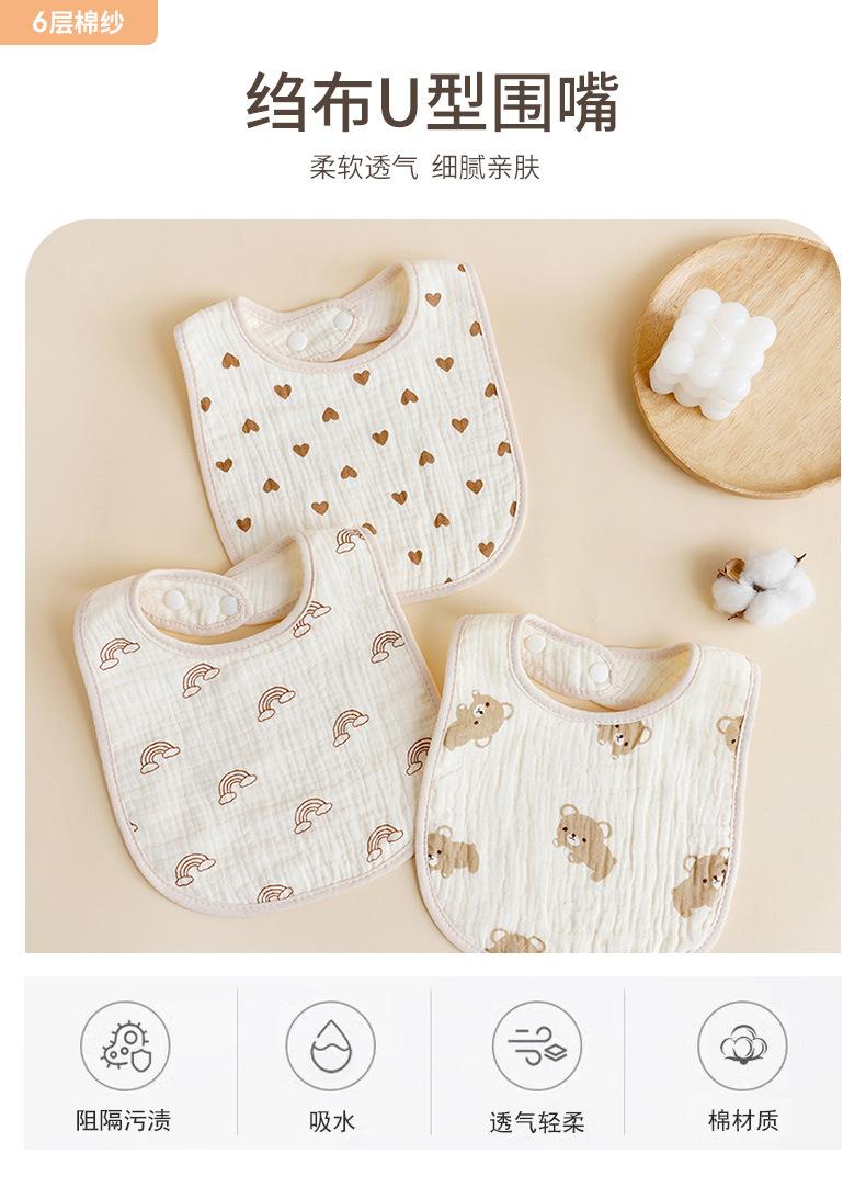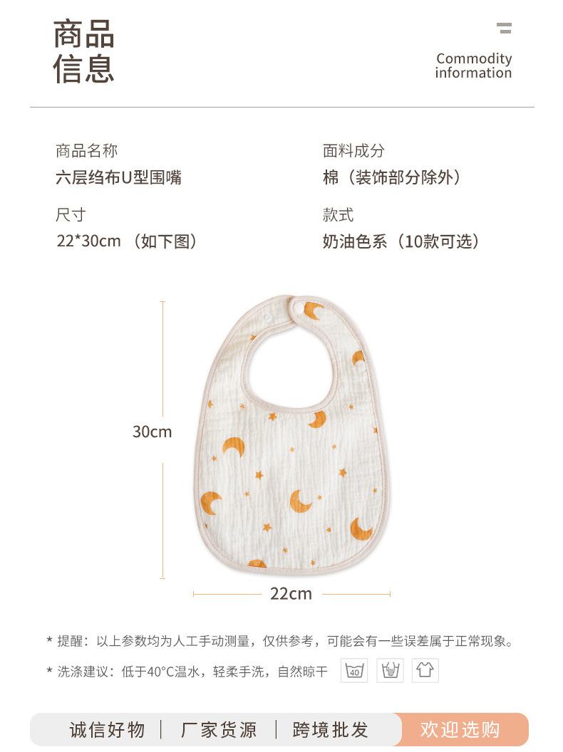 Babero en U de 6 capas Babero de gasa transfronterizo Babero para saliva de bebé Servilleta de crepé Transpirable Absorbente