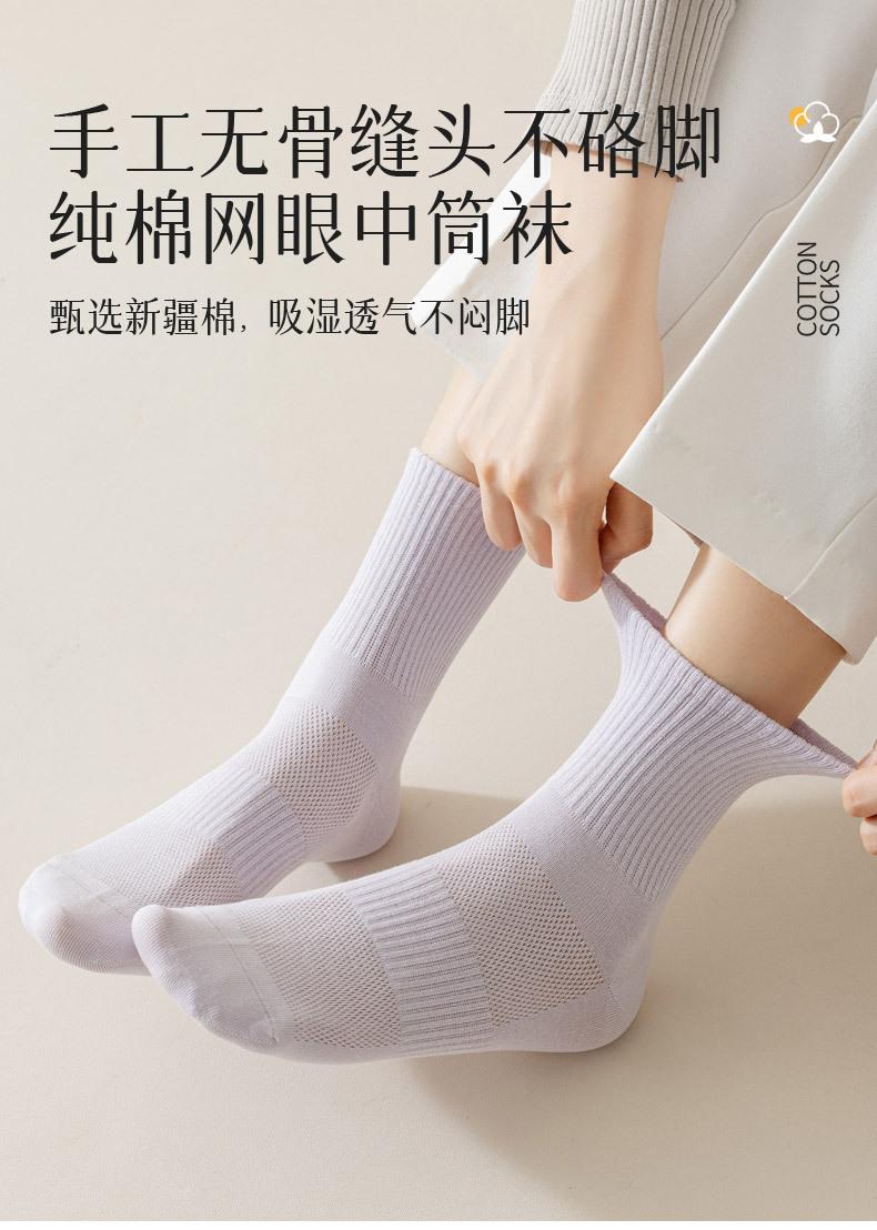 Calcetines de algodón de verano para mujer, de malla fina, transpirables, absorbentes del sudor, desodorantes, con zapatos blancos, sin espinas, cómodos, de color sólido.