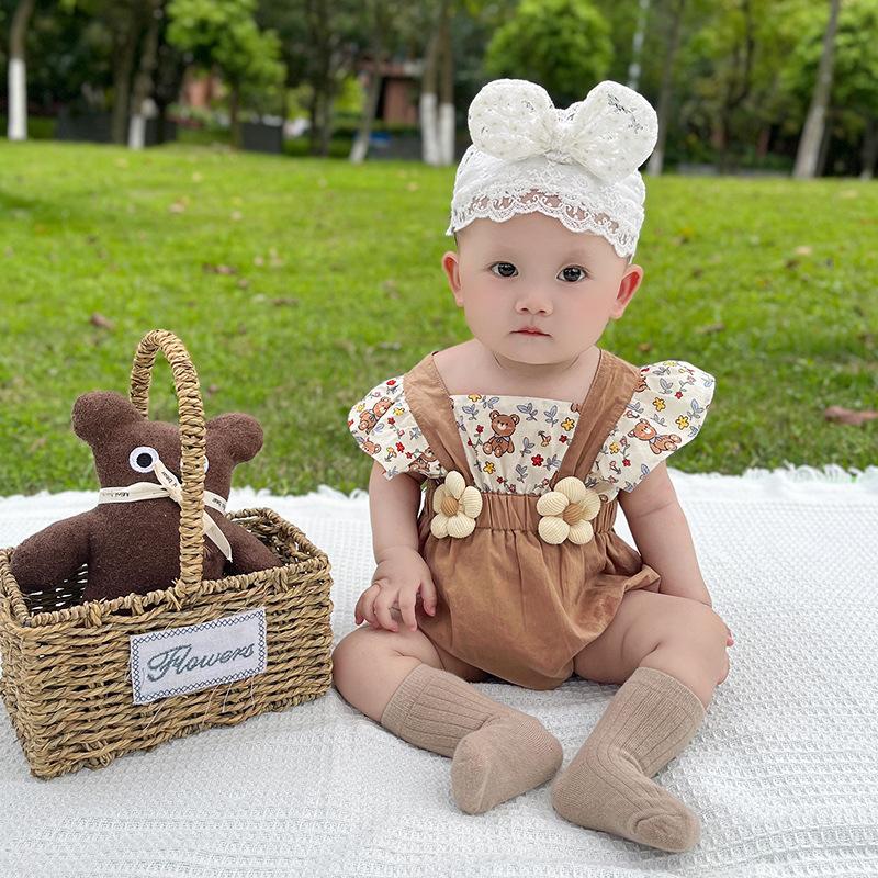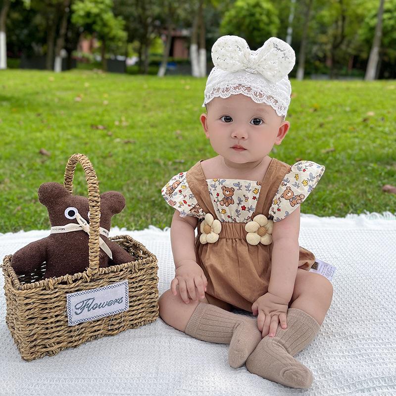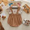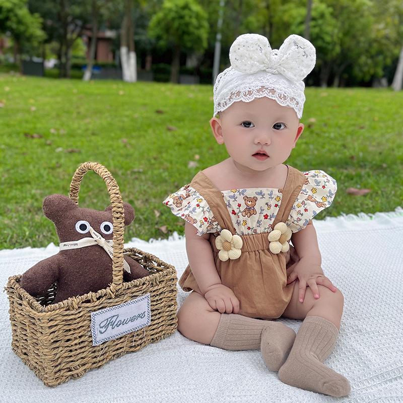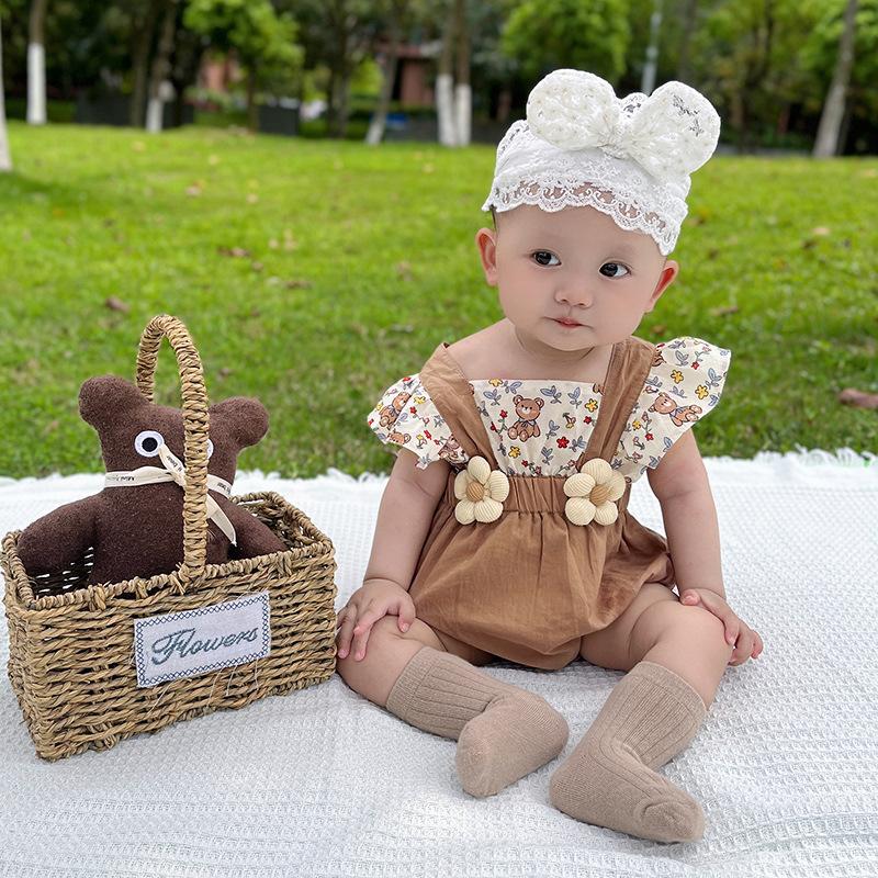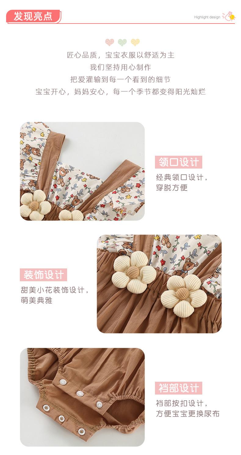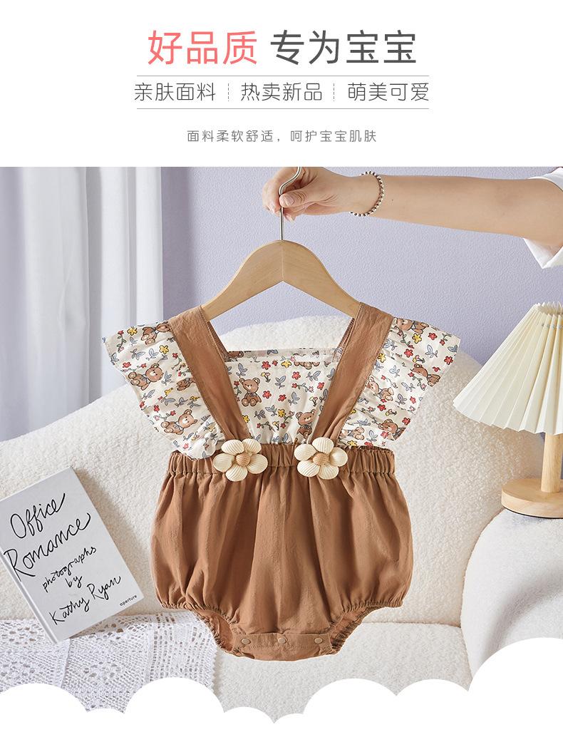 Ropa Pedo Envolvente Verano Delgada Ropa de Bebé Triángulo Escalada Tridimensional Flor Pequeña Manga Remangable Ropa Todo en Uno para Bebé Ropa de Verano para Bebé