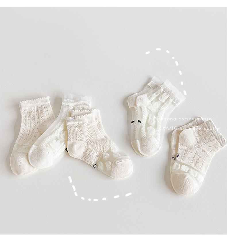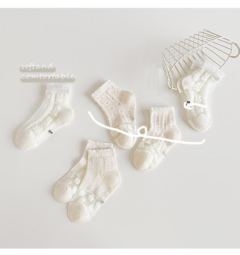 Medias de cristal blancas para niños, calcetines finos de algodón de verano para niñas, calcetines de media pantorrilla de encaje de Princesa de Cristal para bebé, verano