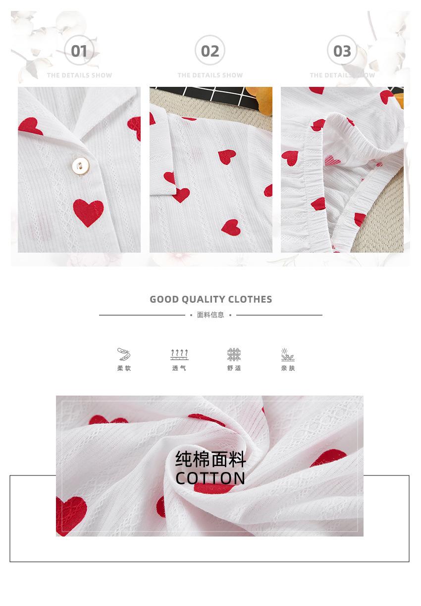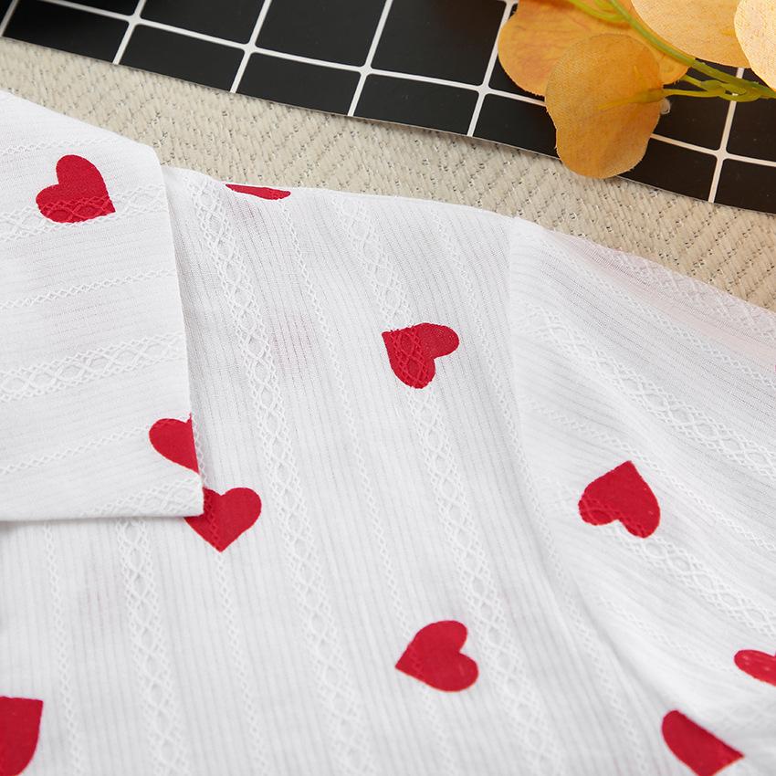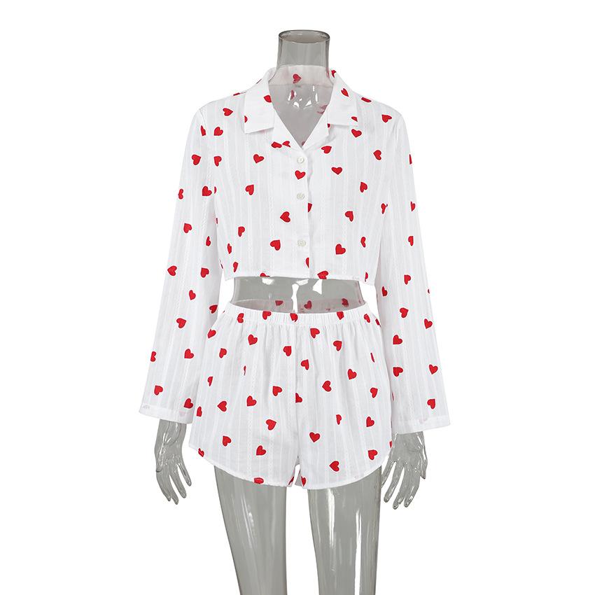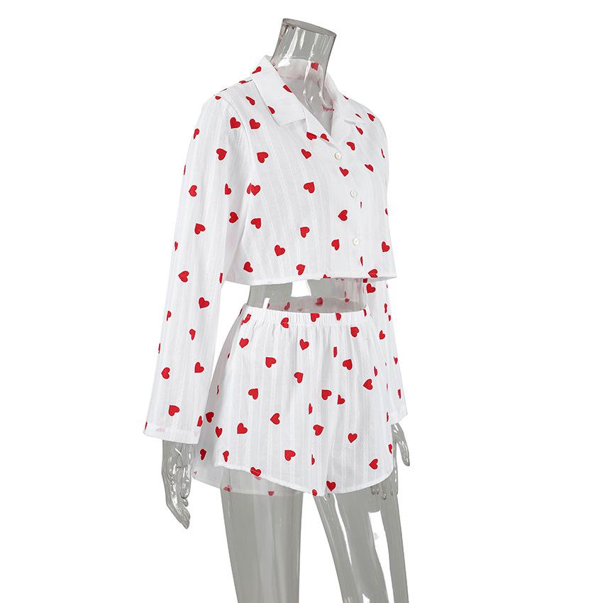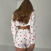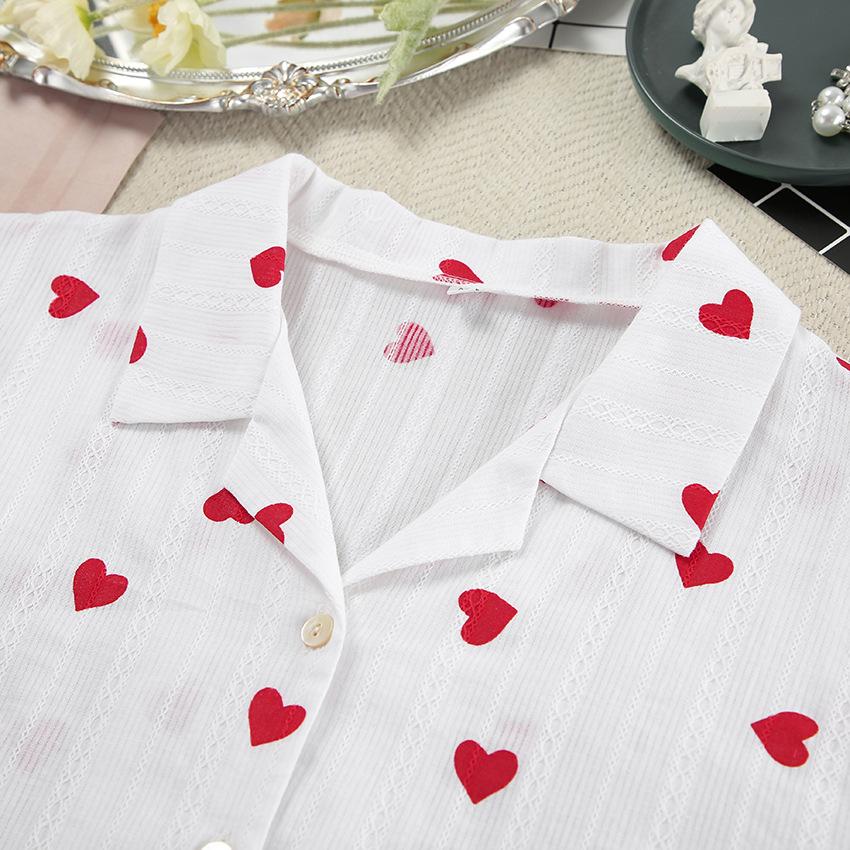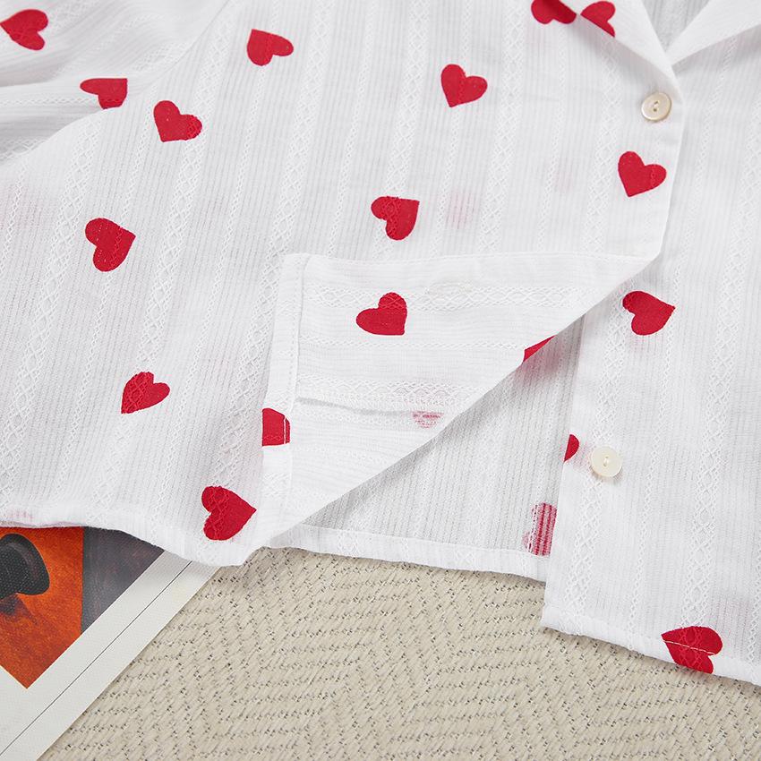 Pijama corto de manga larga, suelto, suave y cómodo, de algodón puro con estampado de amor de verano 2024, ropa de casa para mujer