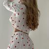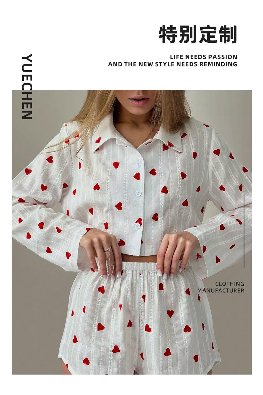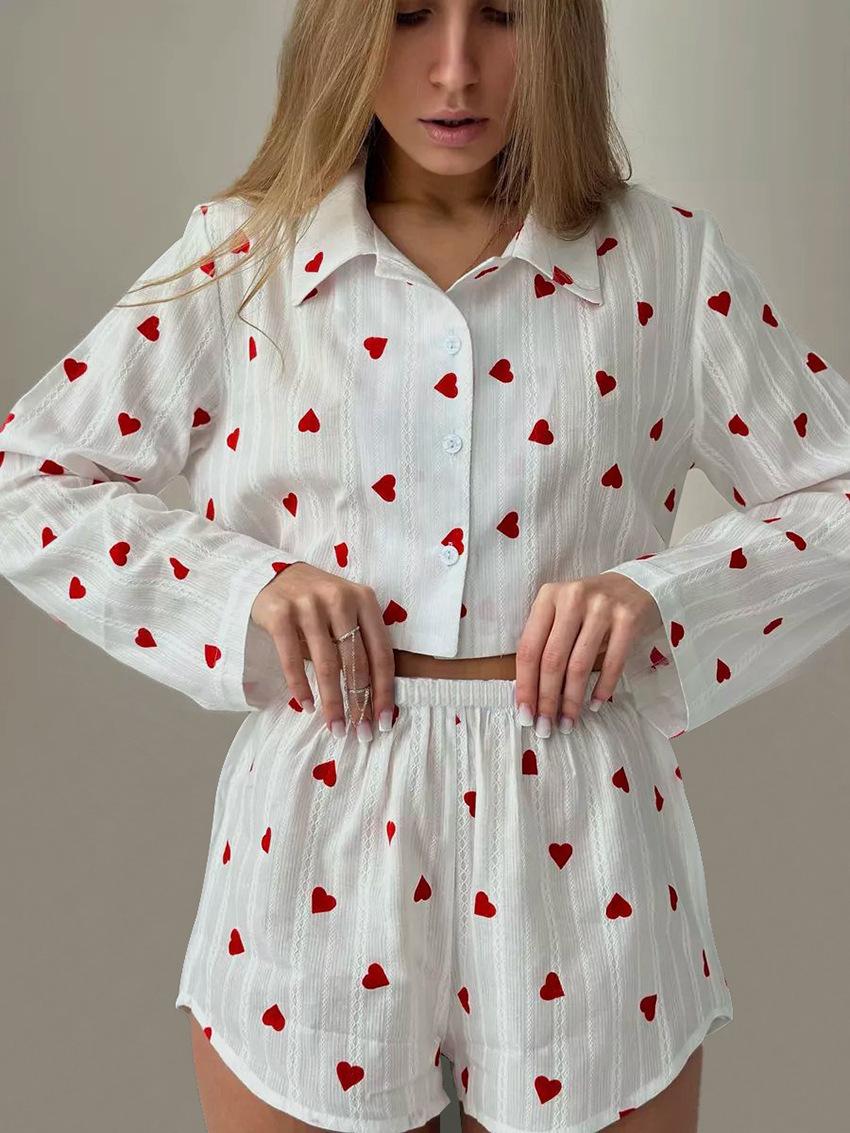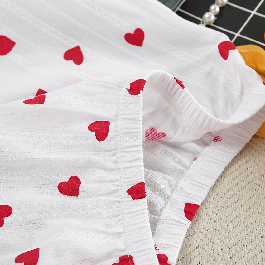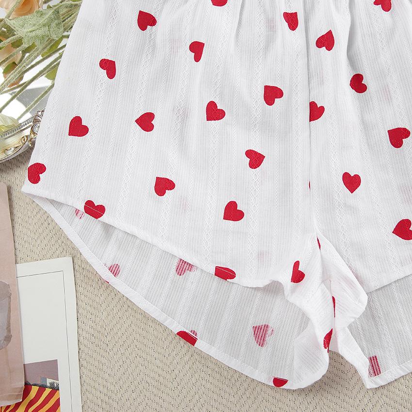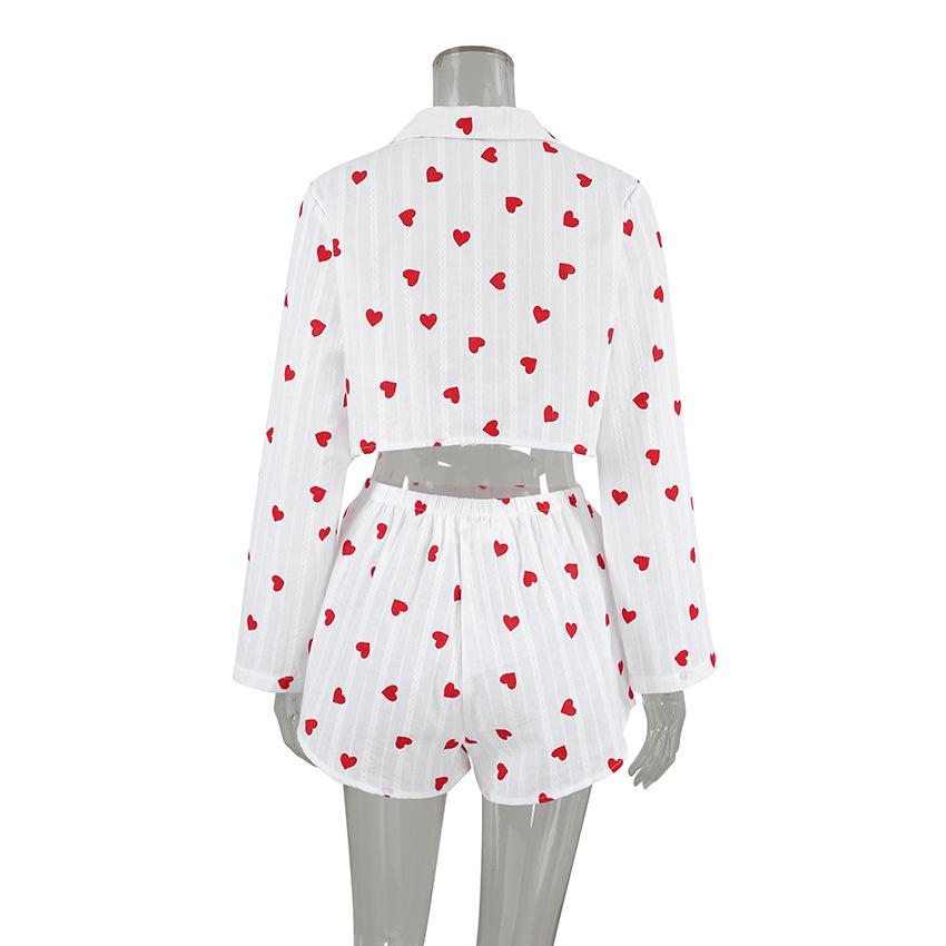 Pijama corto de manga larga, suelto, suave y cómodo, de algodón puro con estampado de amor de verano 2024, ropa de casa para mujer