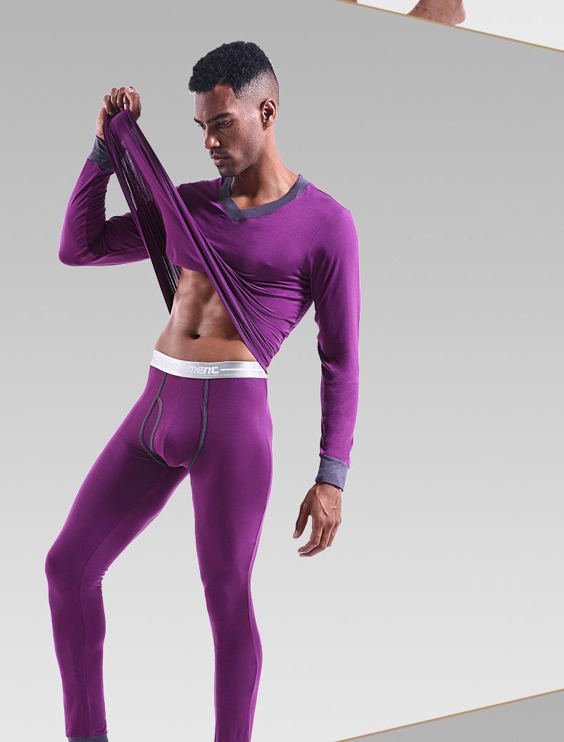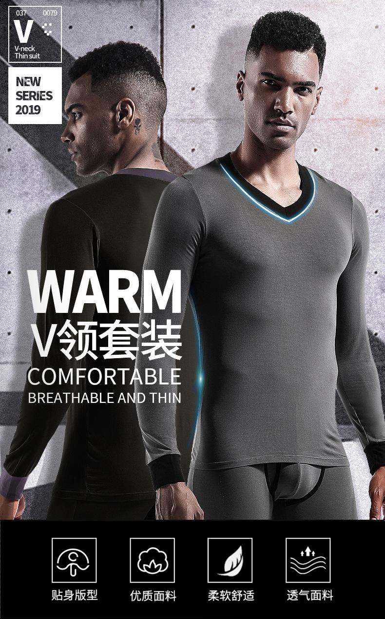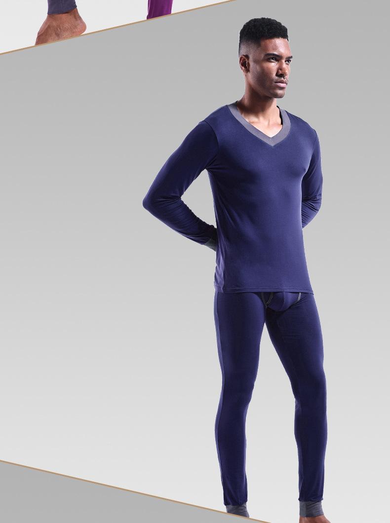 Mallas finas básicas para hombre, cuello en V, sin marcas, ropa interior cálida y cómoda a prueba de frío para hombre, ropa y pantalones de otoño