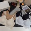 Sujetador ultrafino de una pieza con copa fija, pecho pequeño fruncido, sin costuras, cómodo, fruncido, tirantes anchos, elegante y hermoso, ropa interior para mujer