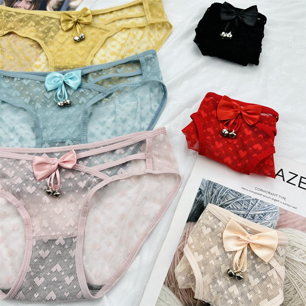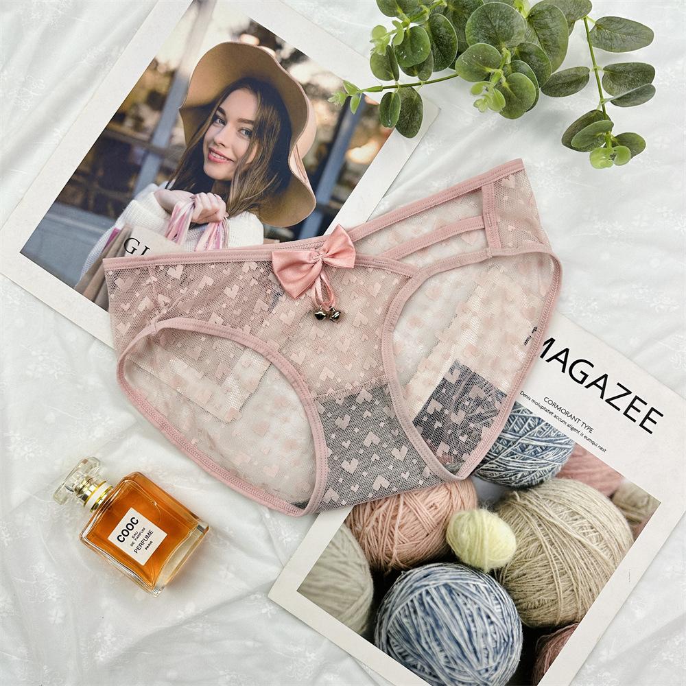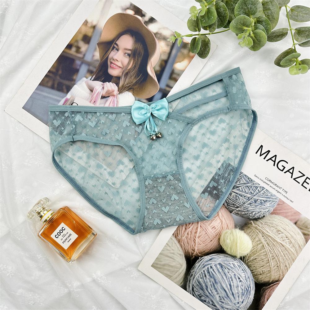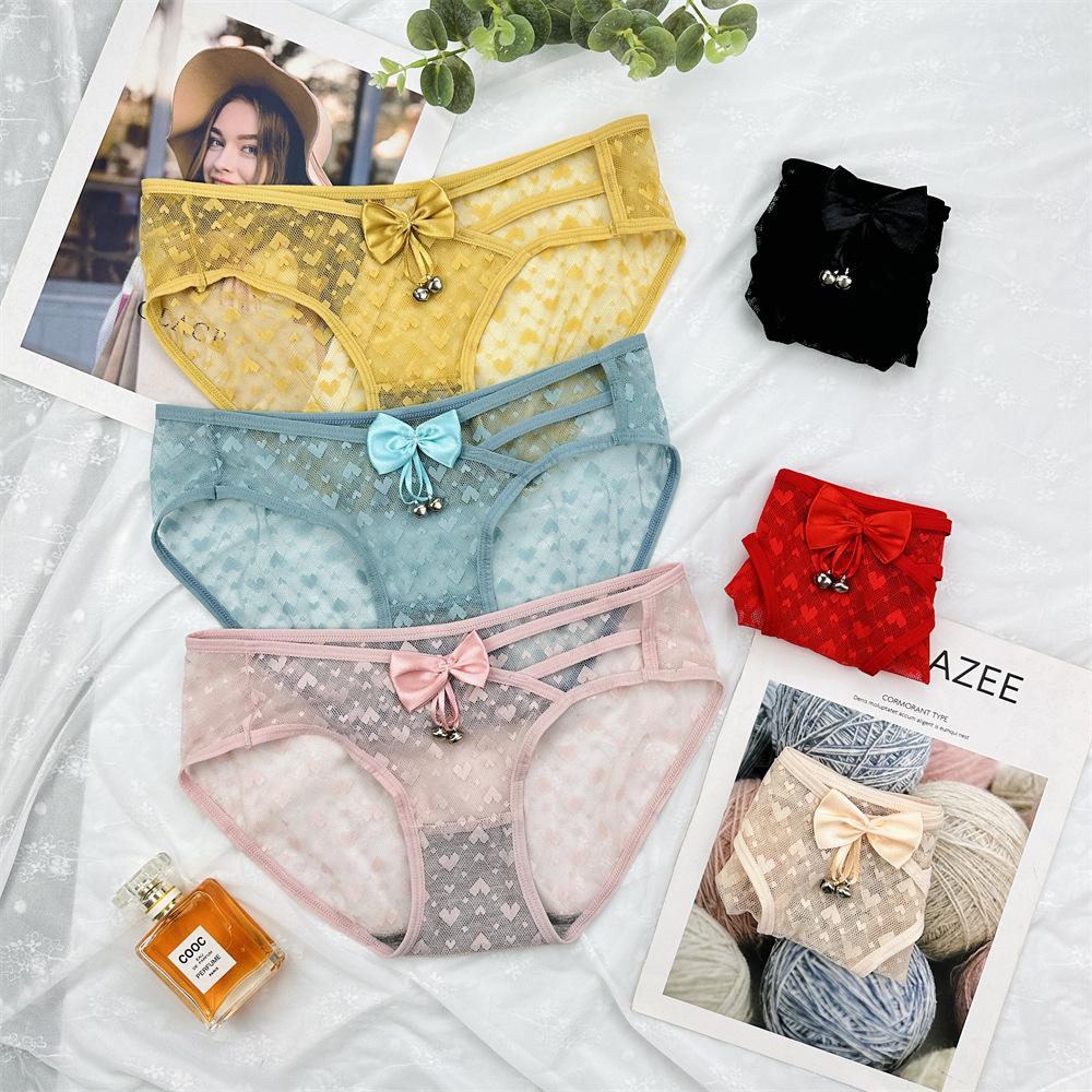 Ropa interior de encaje para mujer, de cintura baja, alta elasticidad, cómoda, transpirable, con corte, lazo de campana, ropa interior para mujer 1045 #