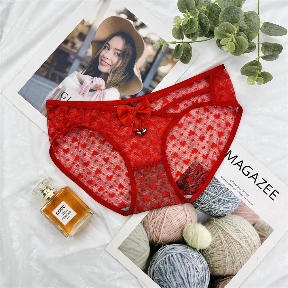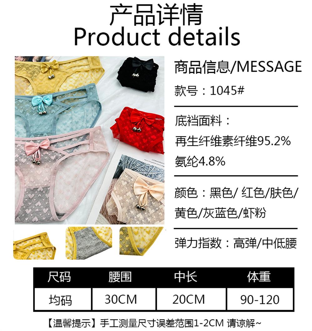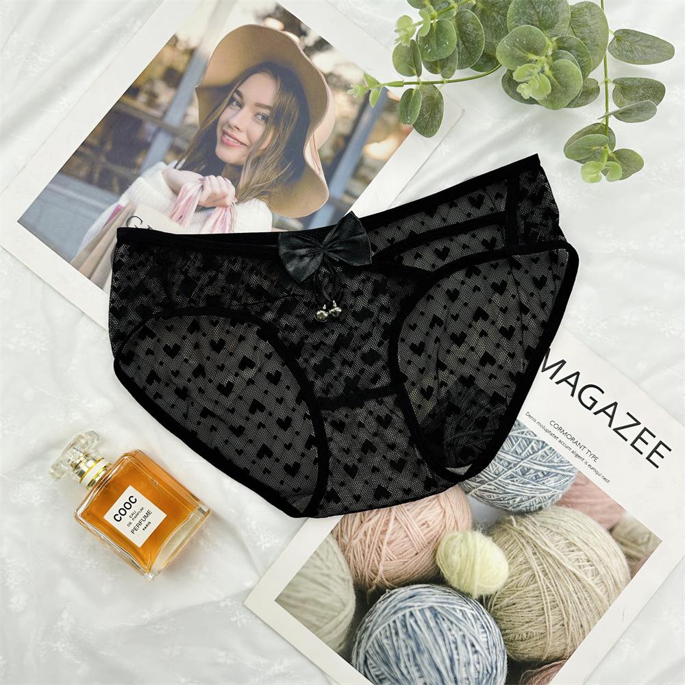 Ropa interior de encaje para mujer, de cintura baja, alta elasticidad, cómoda, transpirable, con corte, lazo de campana, ropa interior para mujer 1045 #