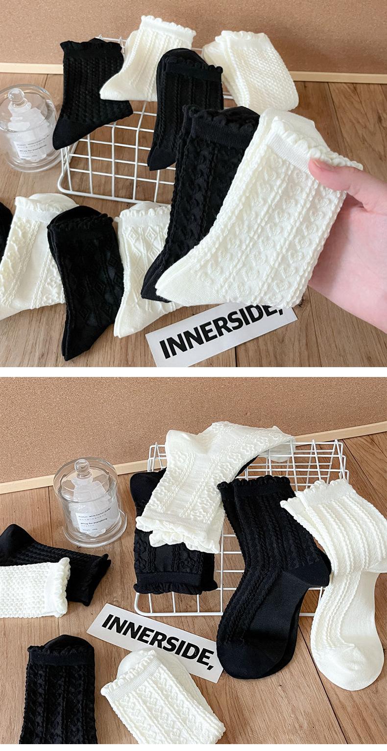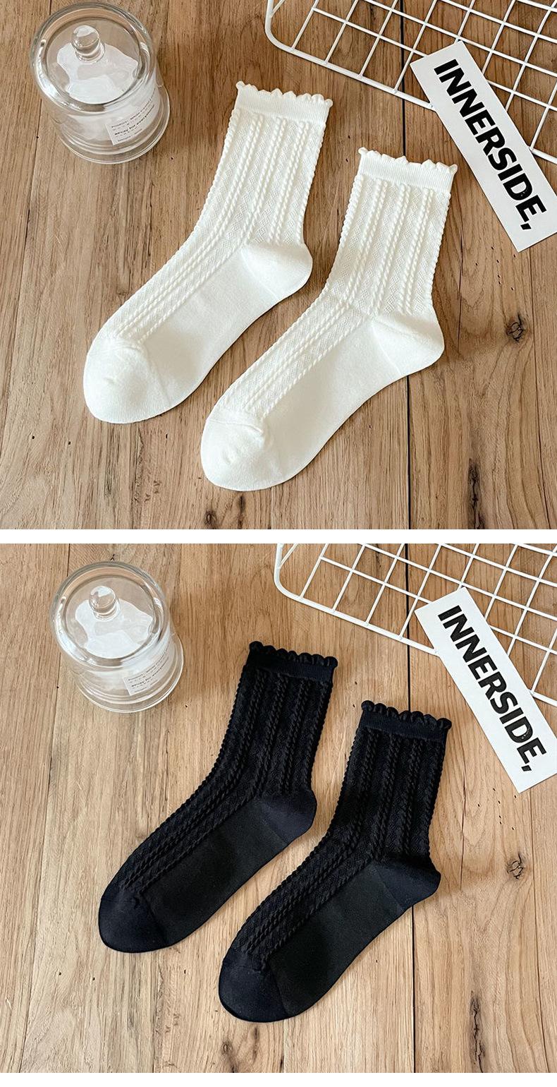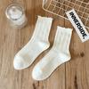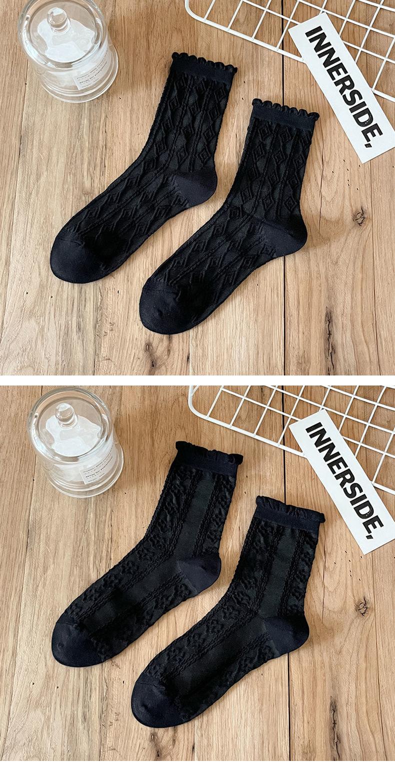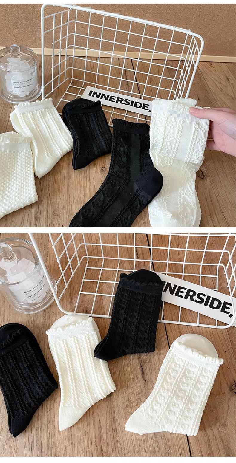 Calcetines de verano para mujer, finos, de longitud media, de color liso, en blanco y negro, largos, con encaje, para chicas estudiantes.