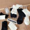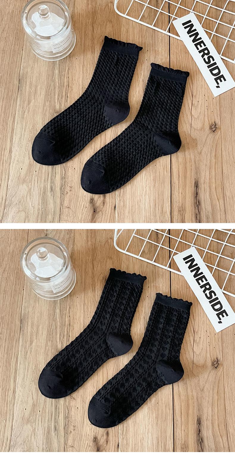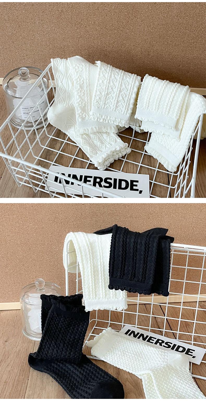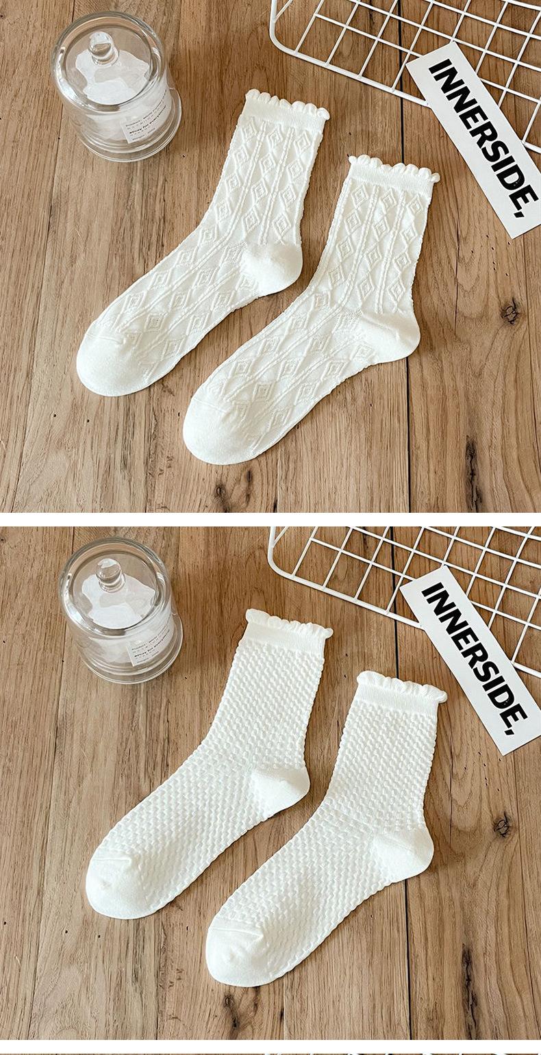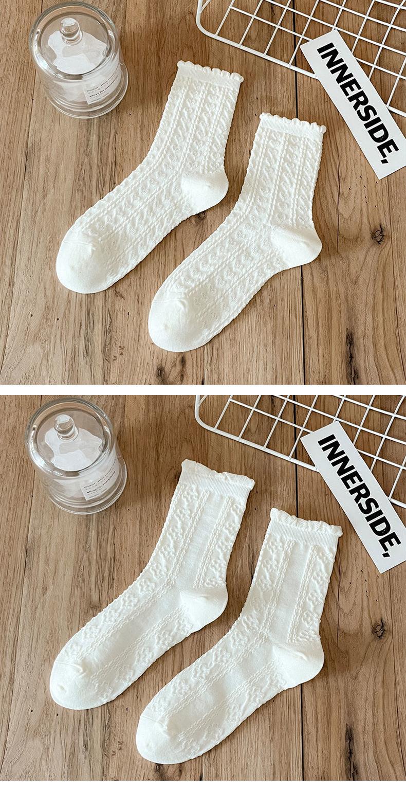Calcetines de verano para mujer, finos, de longitud media, de color liso, en blanco y negro, largos, con encaje, para chicas estudiantes.