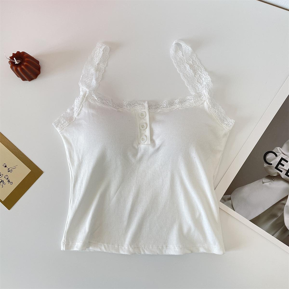 Compra Camisola de mujer con diseño interior y exterior de encaje de punto blanco, parte inferior francesa elegante, pura y suave. al por mayor en Joom.pro