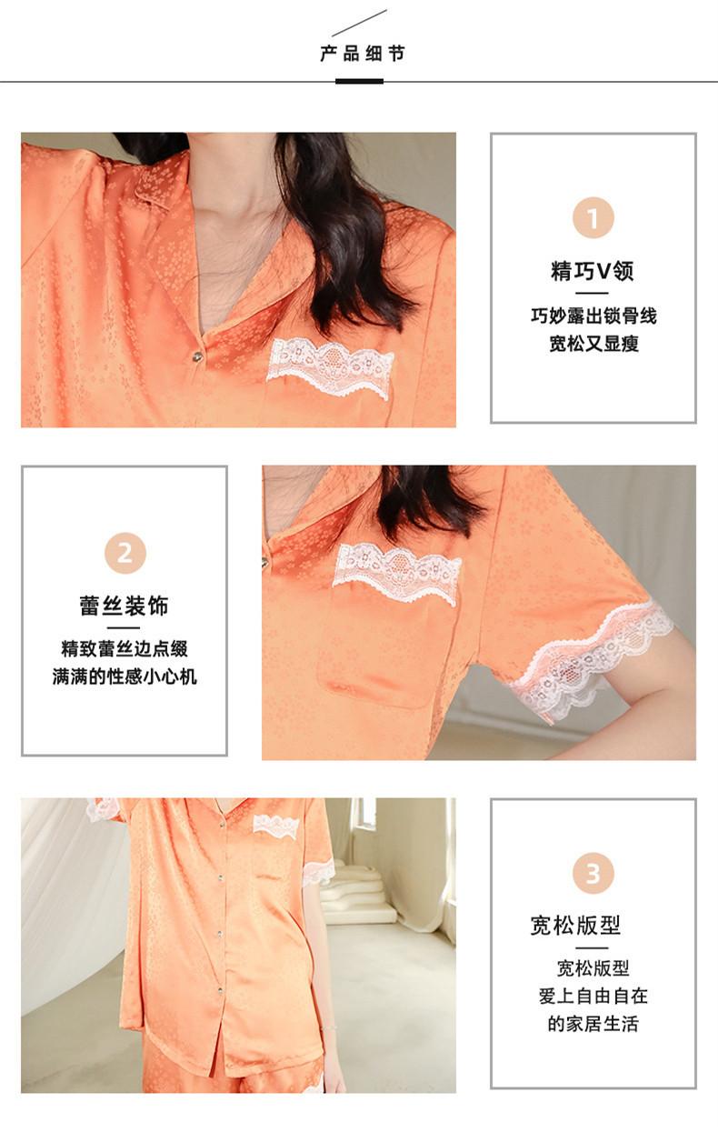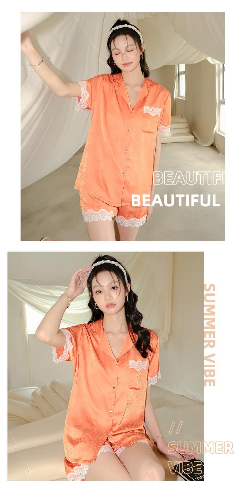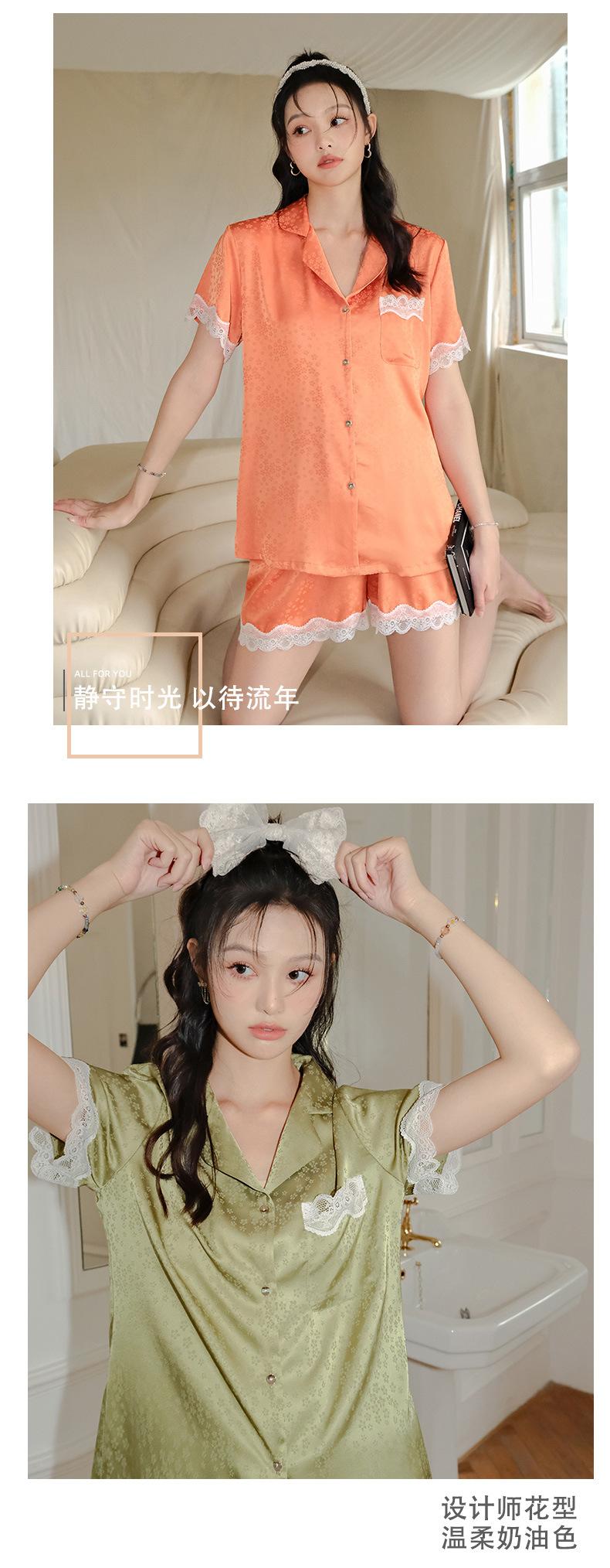 Pijama de verano 2024 para mujer, de seda de hielo, jacquard, con encaje floral, manga corta, pantalones cortos, traje de dos piezas, ropa de casa para mujer