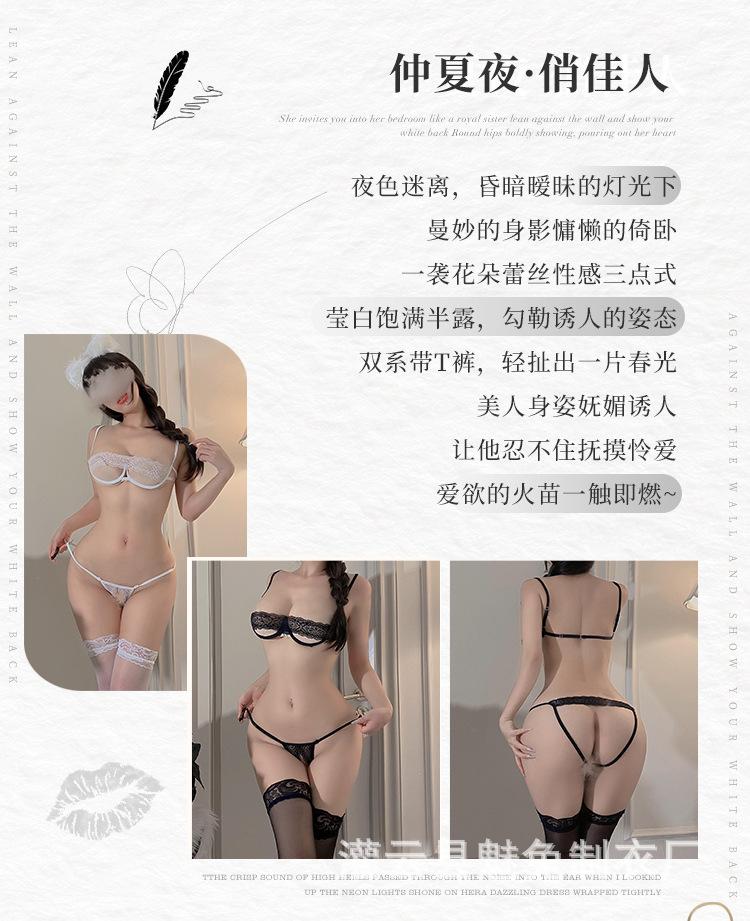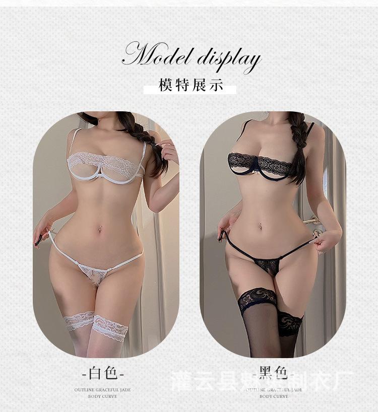 Encantador traje de tres puntos de encaje sexy de conejito ropa interior sexy para mujer de pecho pequeño deseo puro pasión ardiente pijama abierto 2066