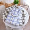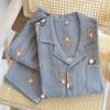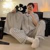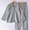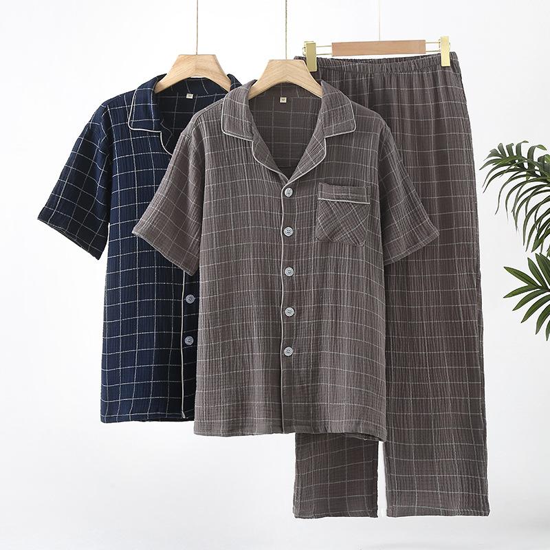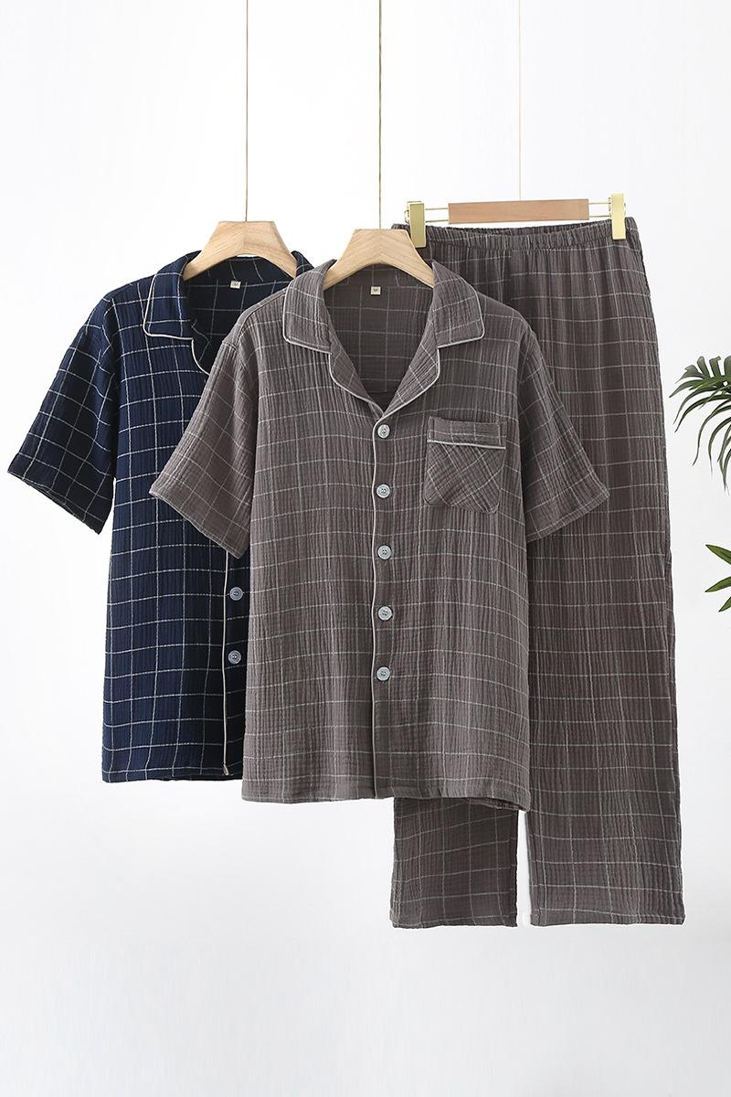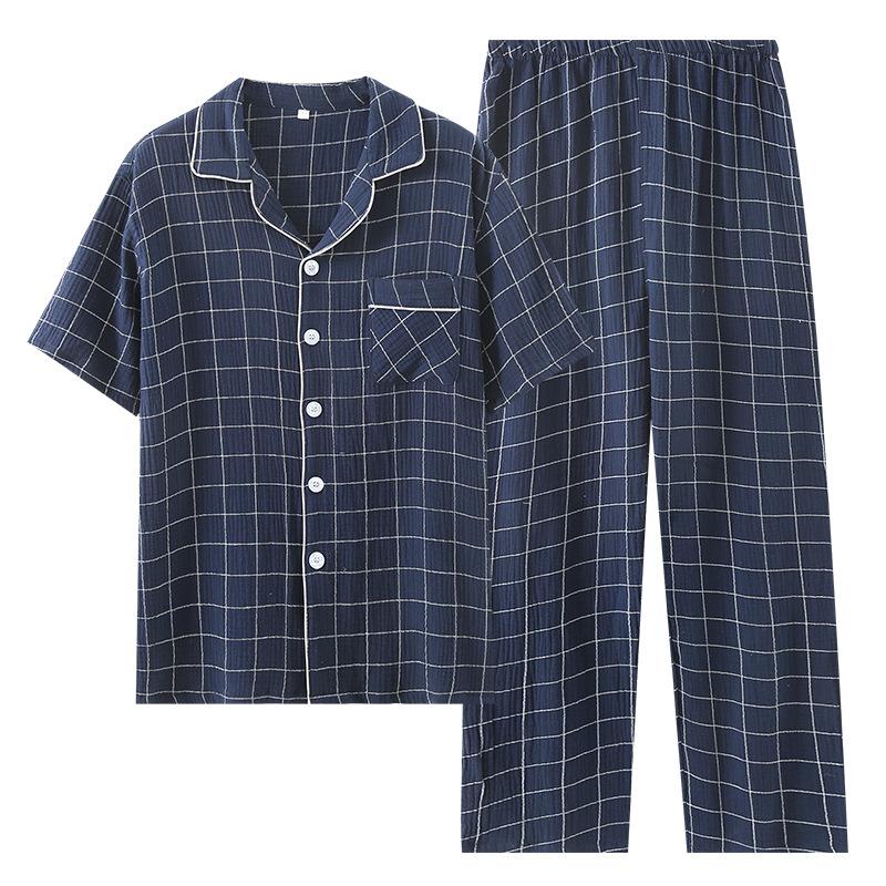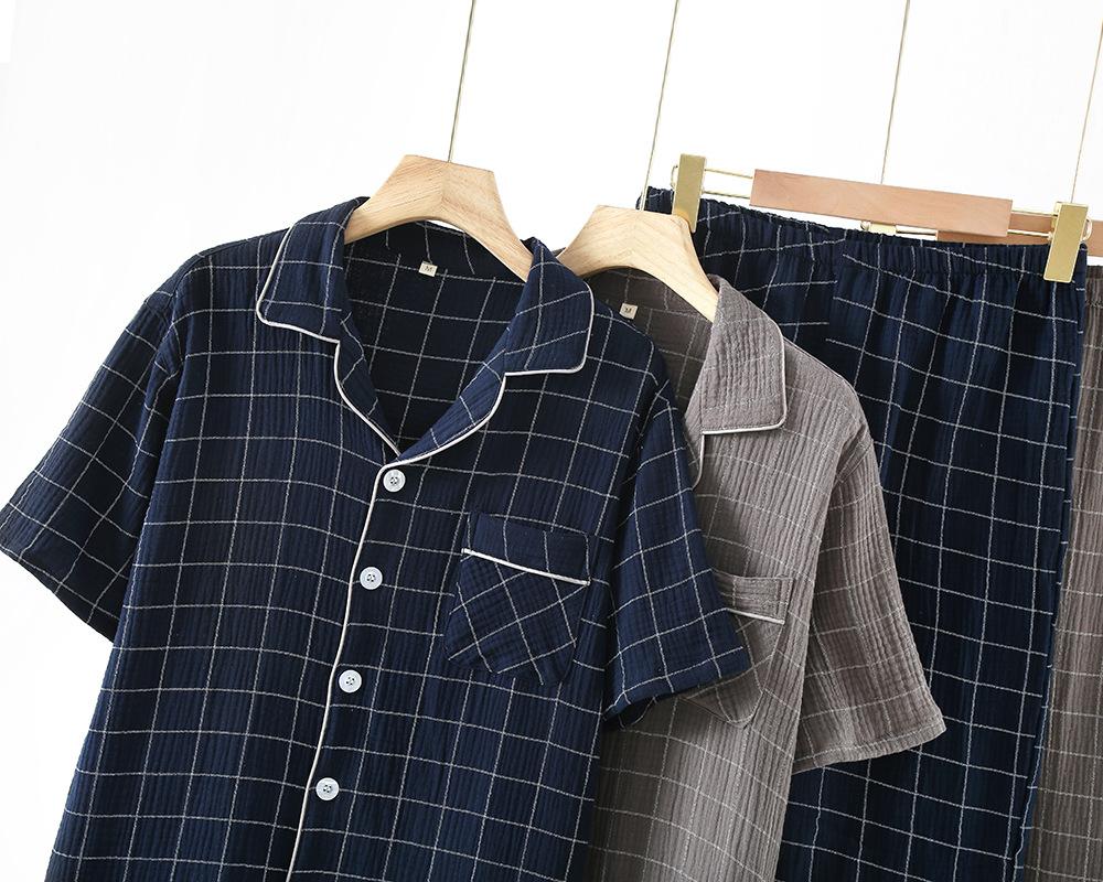 Conjunto de pijama de dos piezas para hombre, de manga corta, de algodón crepé a cuadros, para primavera y verano