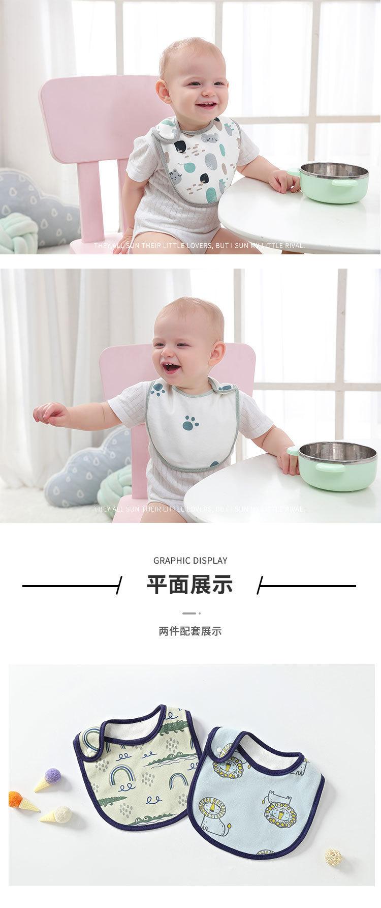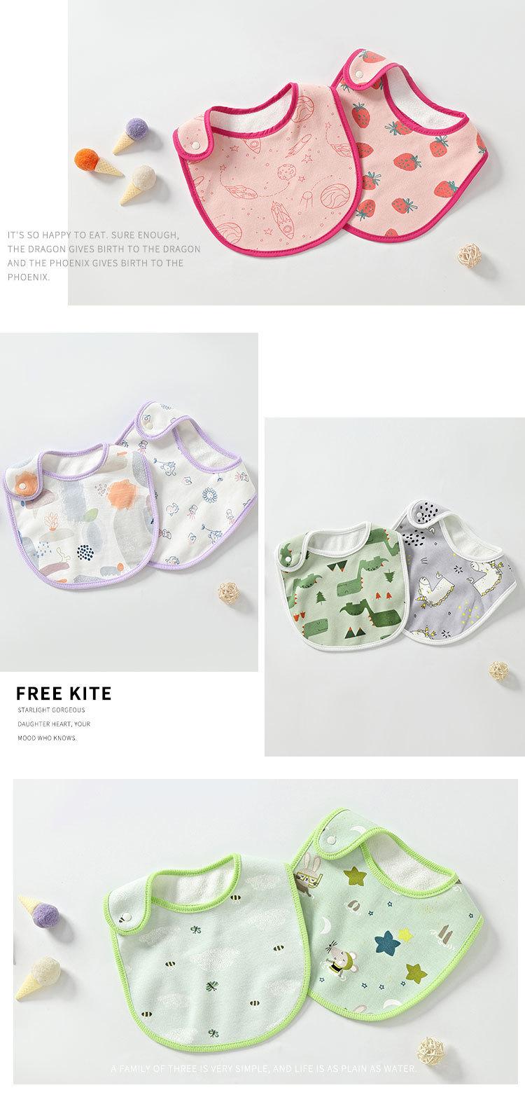 Toalla de saliva de algodón para bebé con botón a presión, babero para comer para bebé, toalla absorbente antisuciedad para niños, paquete de 2, venta al por mayor