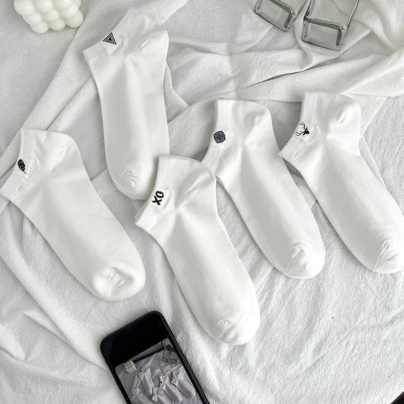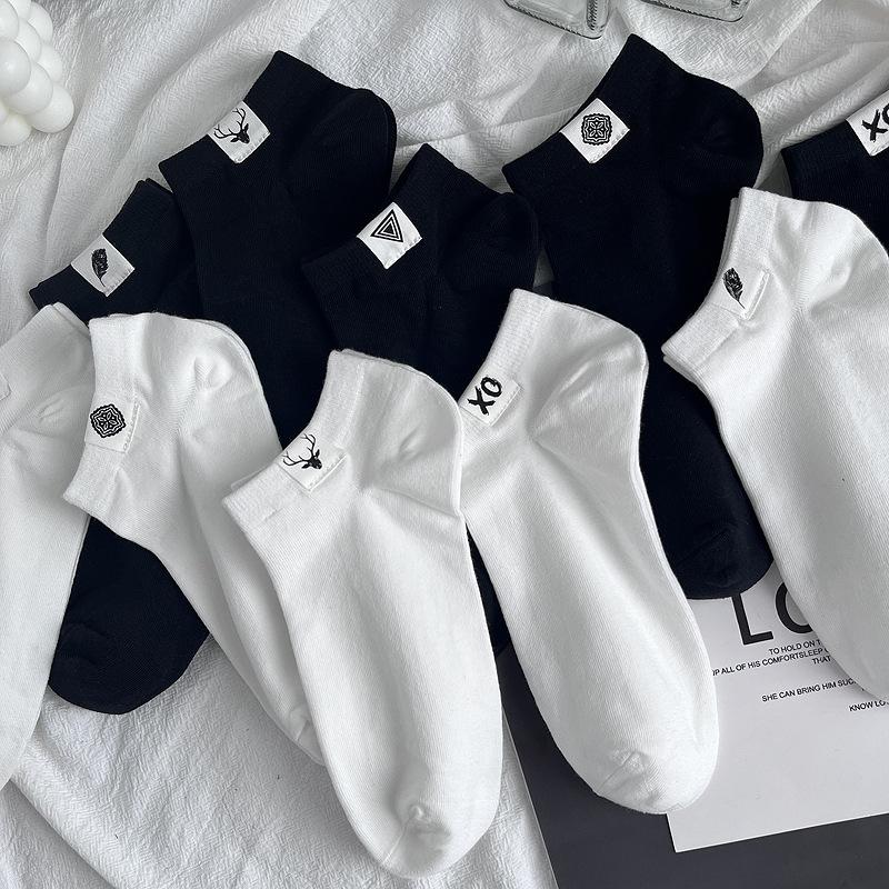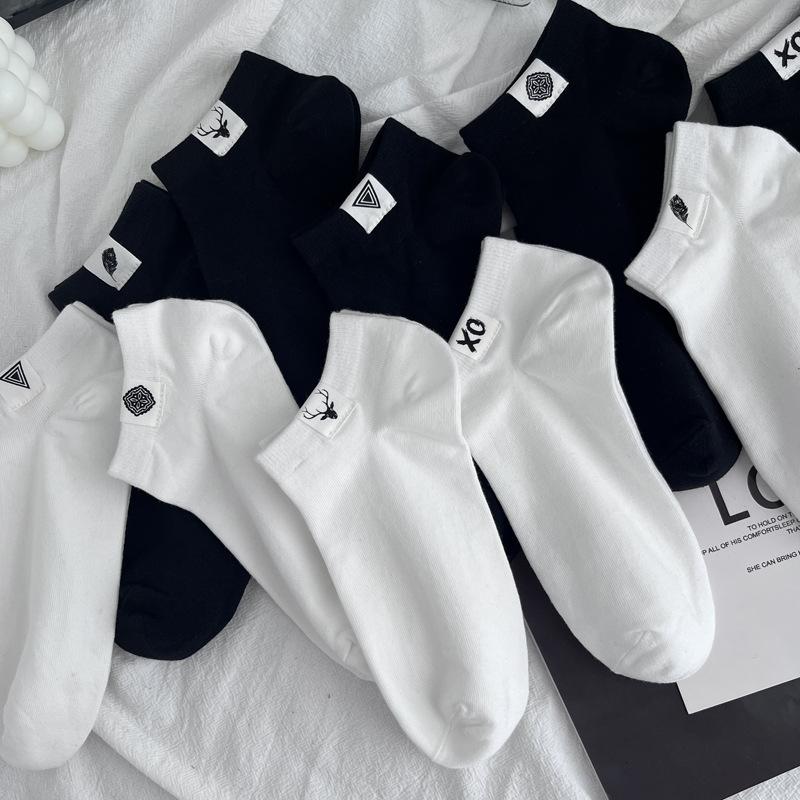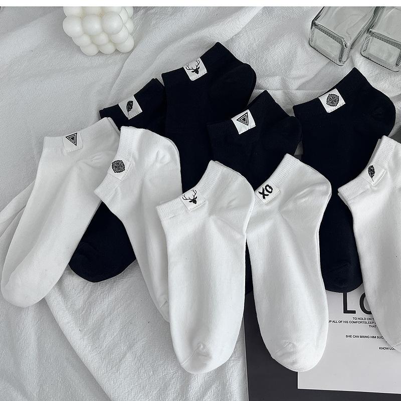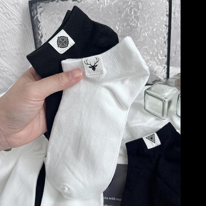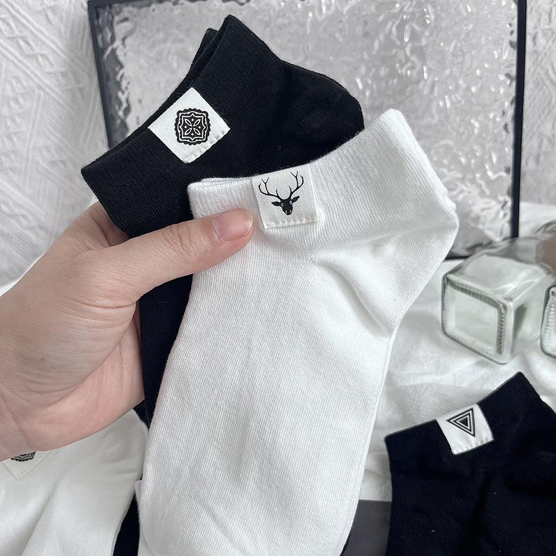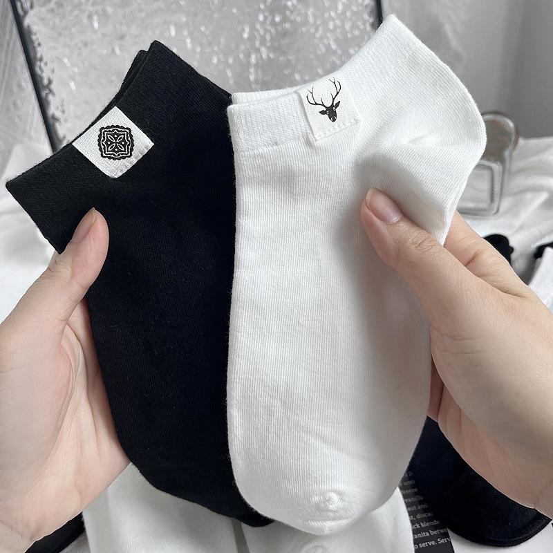 Calcetines para Hombre Absorbentes de Sudor Verano Delgados Blanco y Negro Etiqueta de Tela Calcetines para Hombre Algodón Puro Pareja Calcetines para Mujer Casual Calcetines de Barco Zhuji