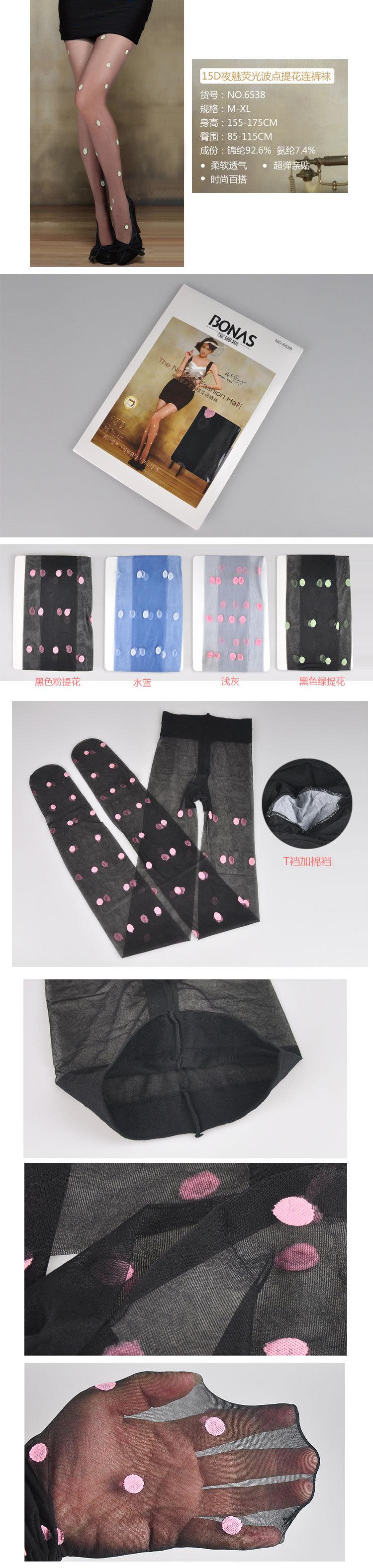 Más de 100 yuanes, envío gratis, venta al por mayor, Bonas, 15D, ultrafinas, súper transparentes, con encanto nocturno, fluorescentes, lunares, jacquard, pantimedias 6538