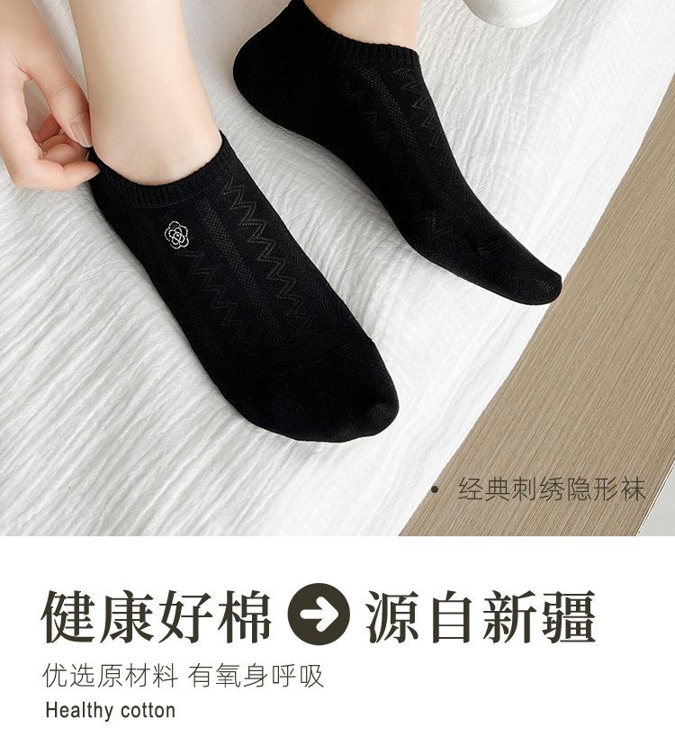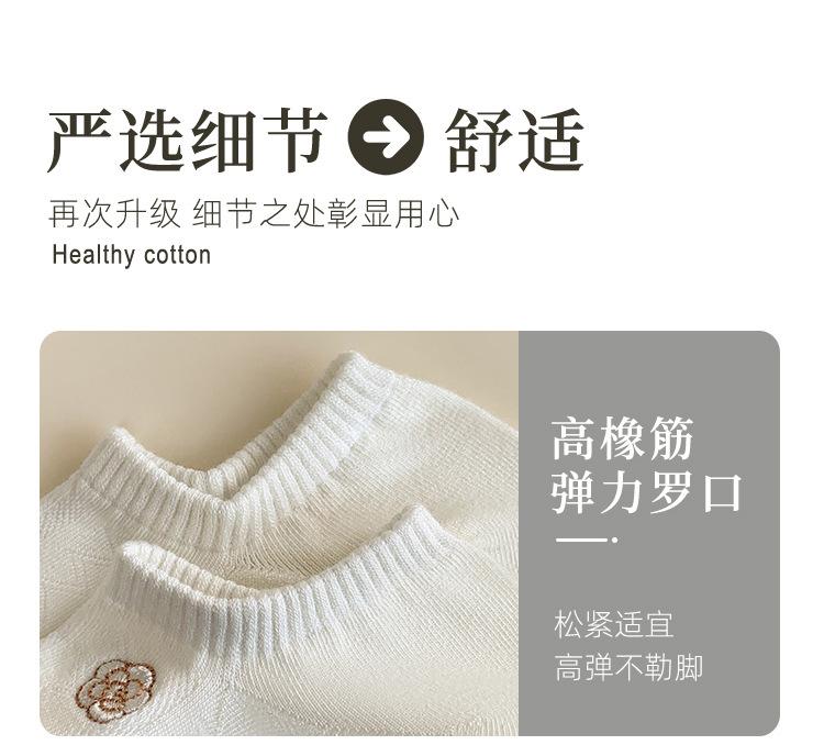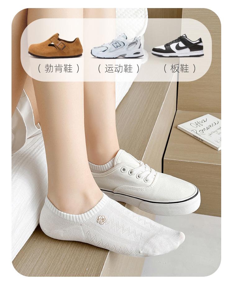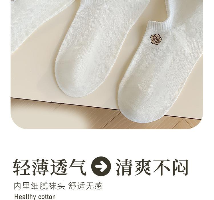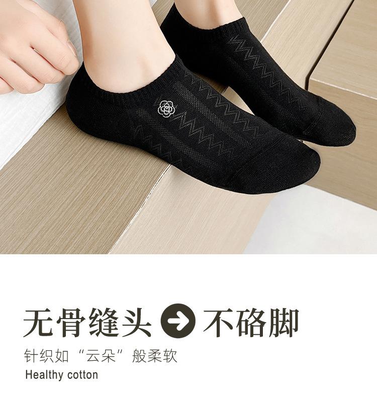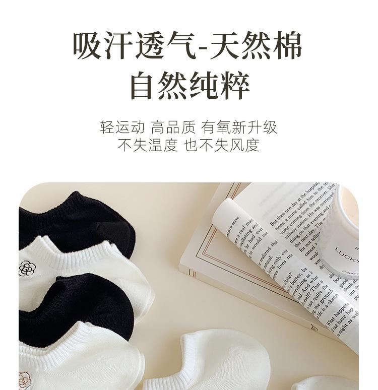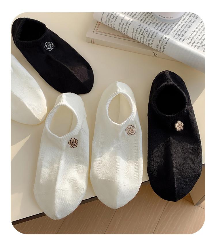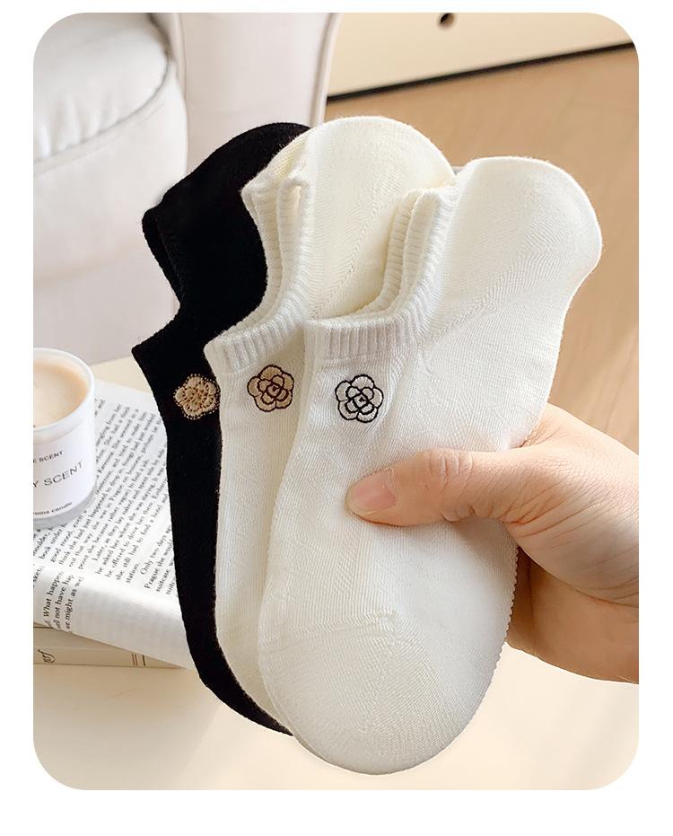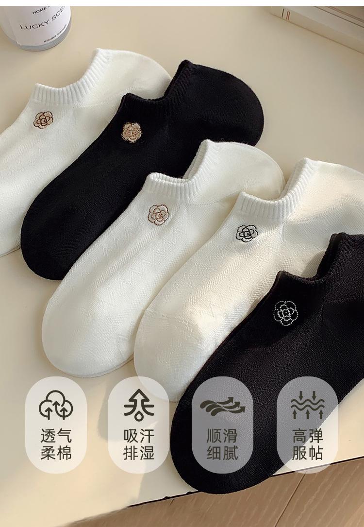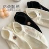 Calcetines de Barco Finos de Verano para Mujer con Bordado de Flores, Malla Transpirable Antideslizante de Boca Baja Invisible, Calcetines de Algodón Blanco y Negro