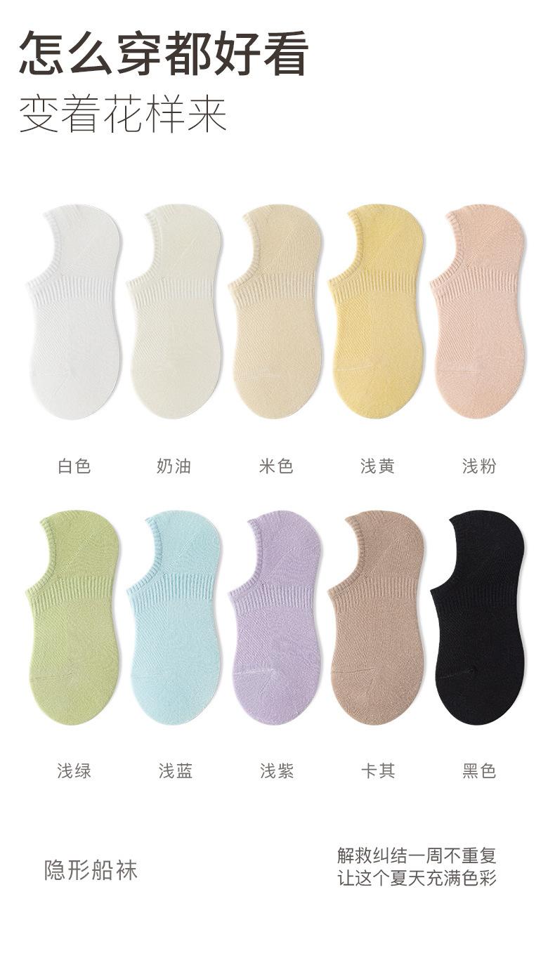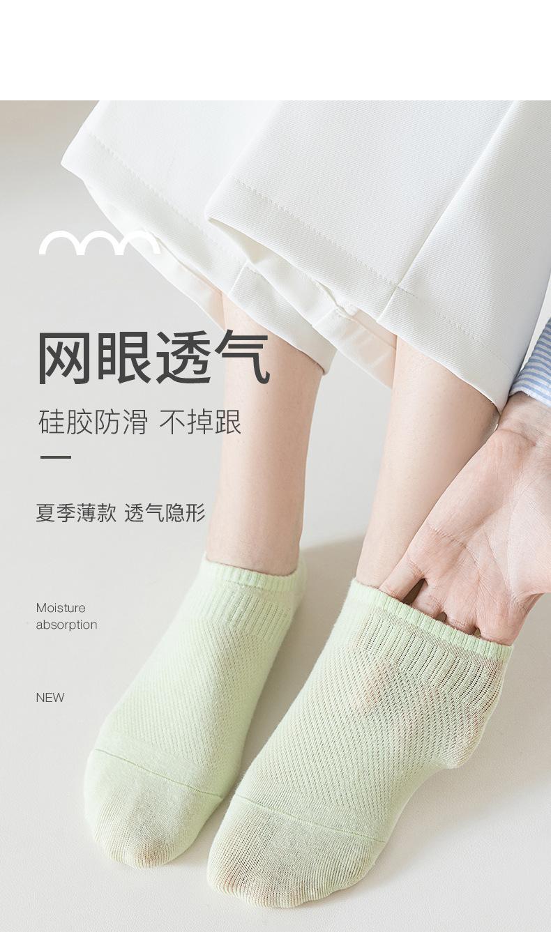 Calcetines Cortos Invisibles para Mujer de Primavera y Verano, Corte Bajo, Malla Fina, Transpirables, Absorbentes del Sudor, Silicona Antideslizante, Color Sólido Versátiles Calcetines Invisibles