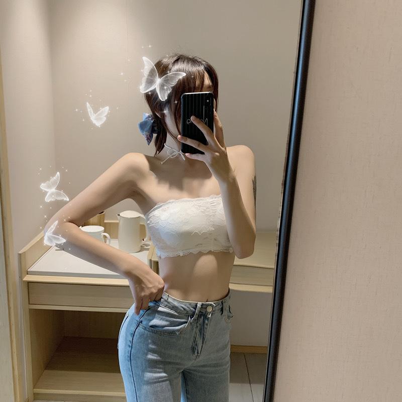 Ropa interior de tubo antideslizante sin tirantes de encaje, base fina, antiexposición, transpirable, push up, belleza, espalda, tira interior envuelta en el pecho para mujer