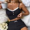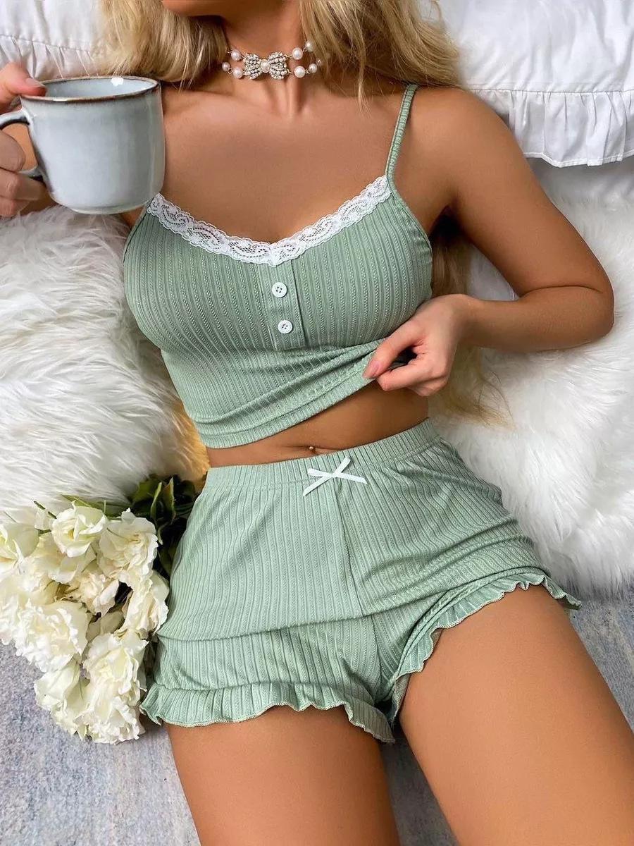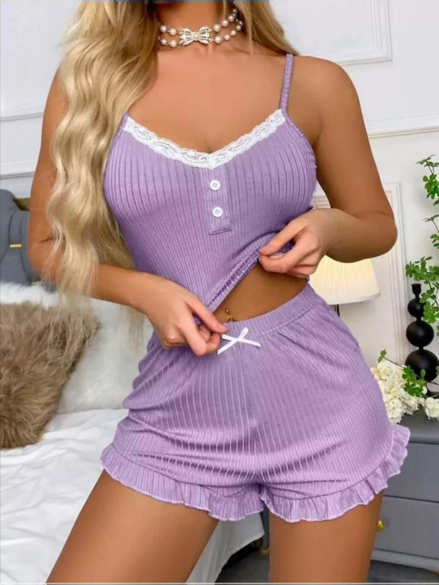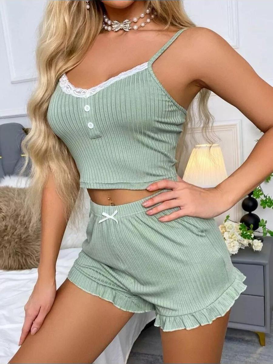 Conjunto de Pijama Sexy de Encaje con Liguero Nuevo Europeo y Americano Shorts Pijama para Mujer Ropa para el Hogar