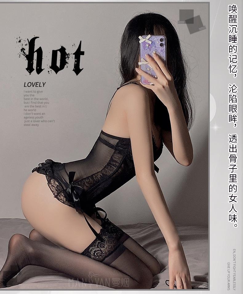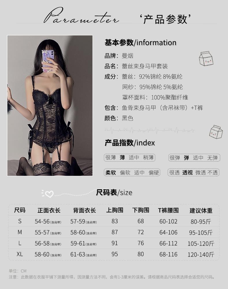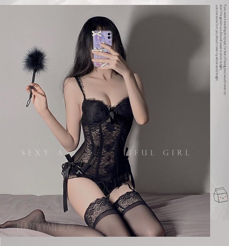 Conjunto de uniforme de lencería sexy Manyan para mujer, estilo europeo y americano, con cinturón y encaje, 9343