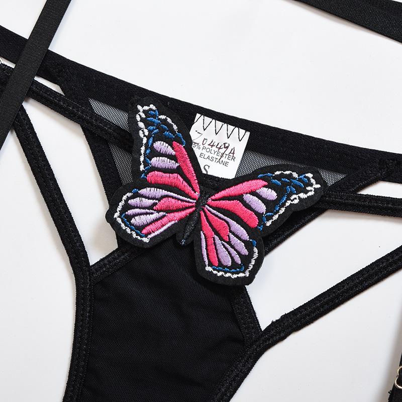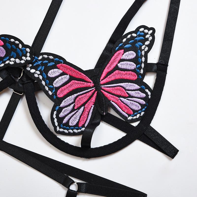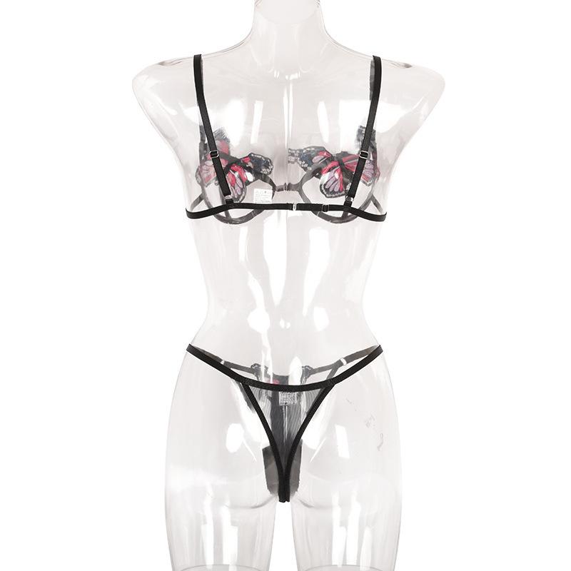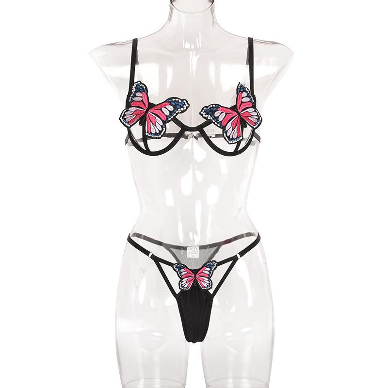 Lencería Transfronteriza de Nuevo Estilo Europeo y Americano, Sexy Conjunto de Bikini de Dos Piezas Calado de Mariposa, Conjunto de Tres Piezas