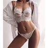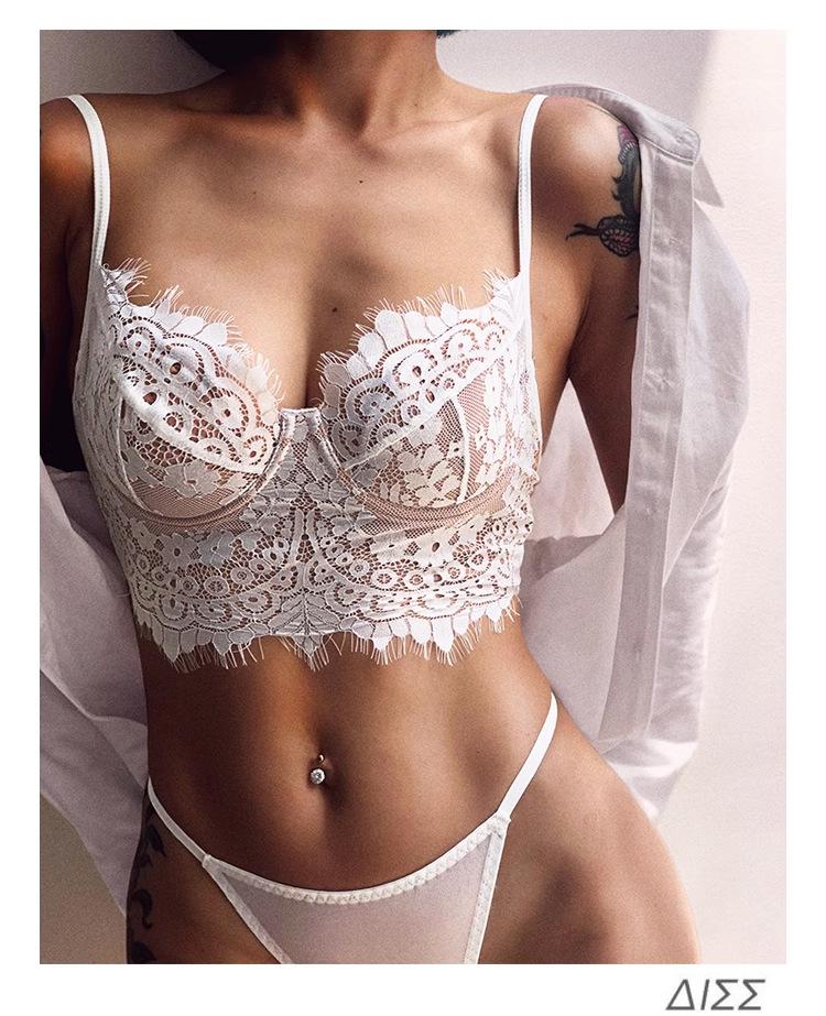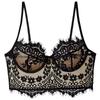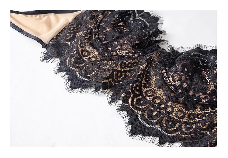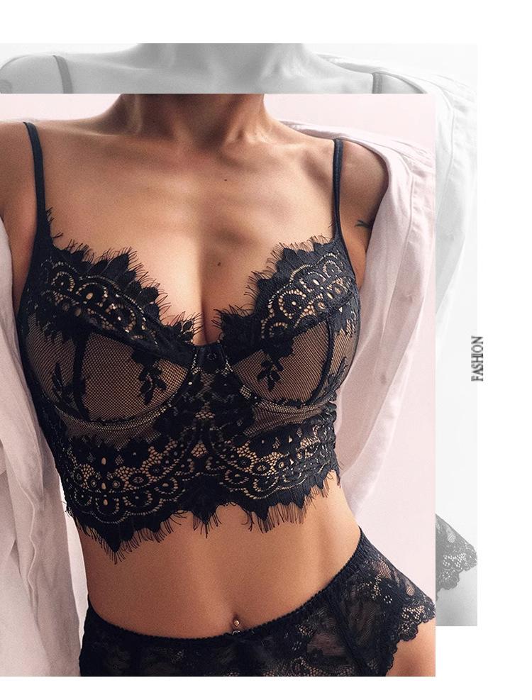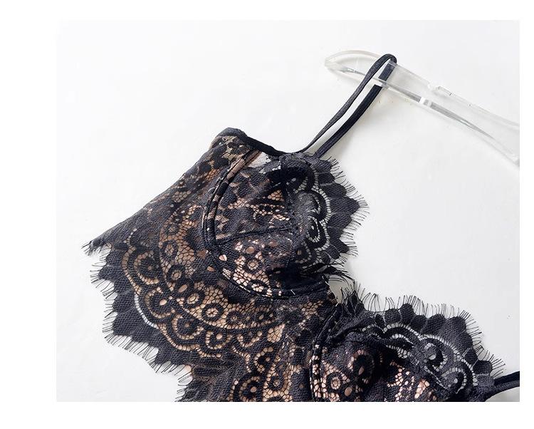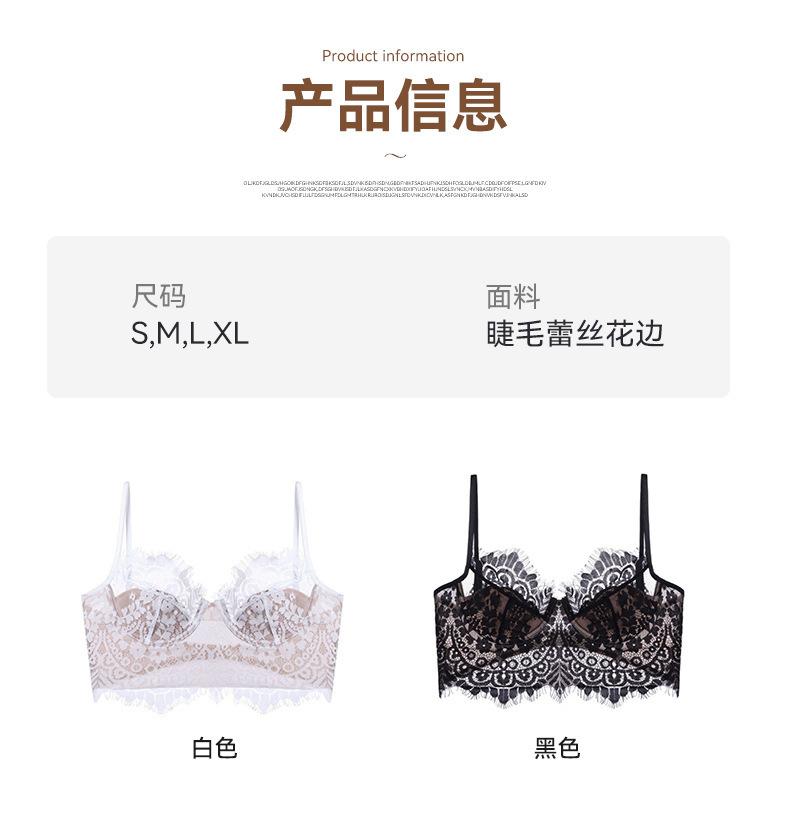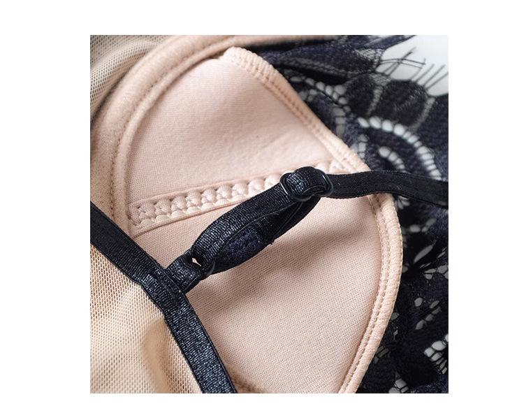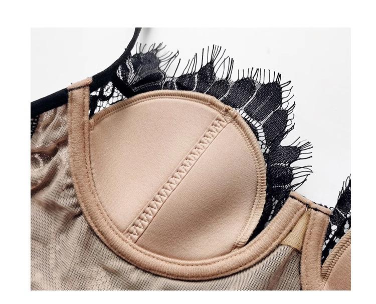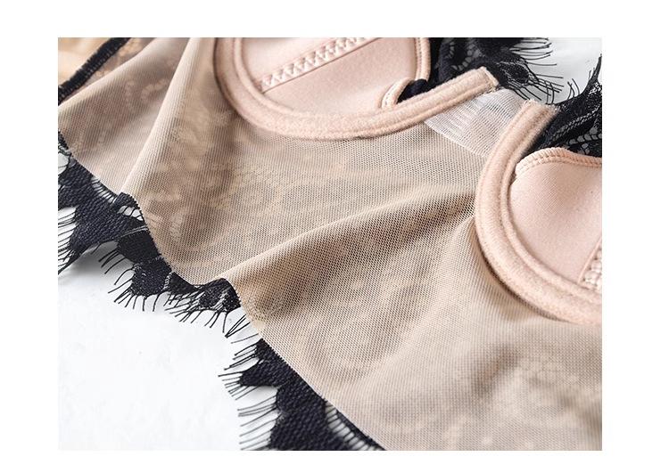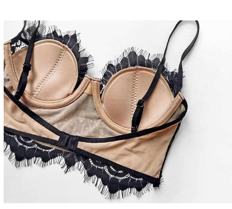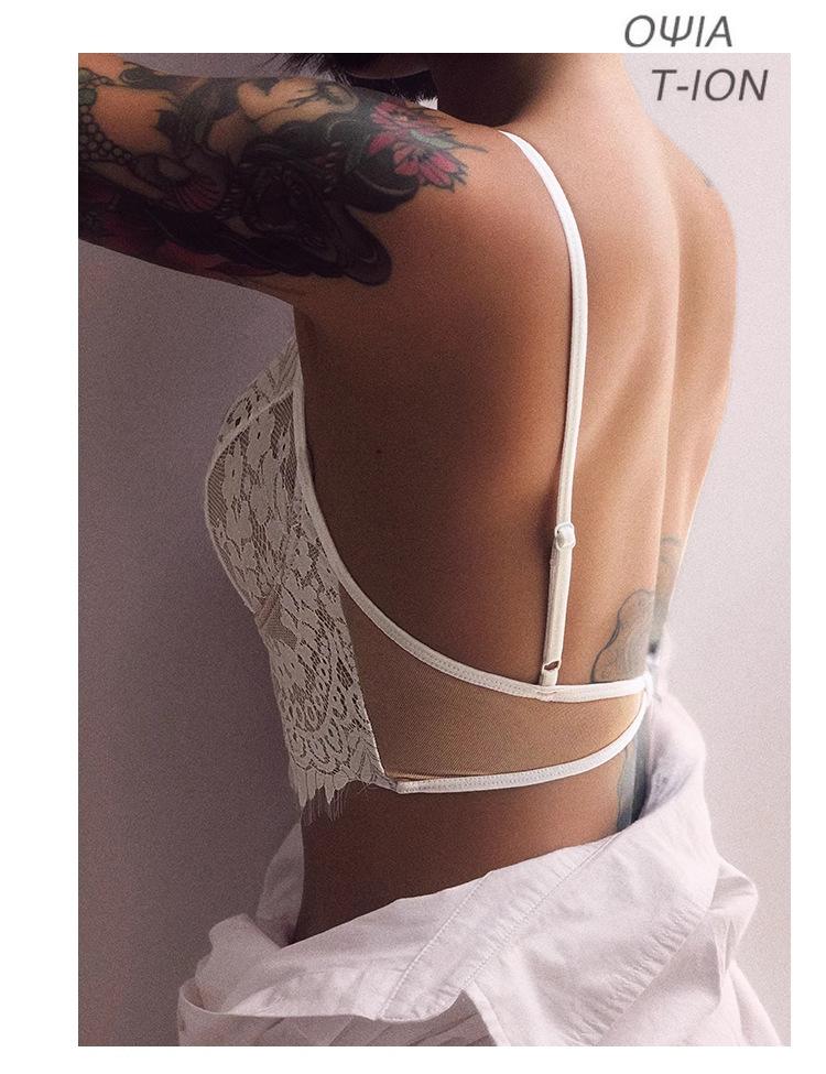 Íntimos de Encaje de Pestañas Francés en Forma de U Espalda Hermosa Sujetador Push-Up Delgado con Aro de Acero Suave Sujetador Grande sin Espalda para Mujer Ultrafino