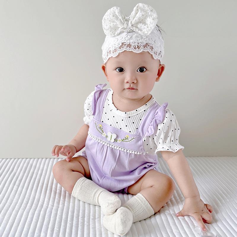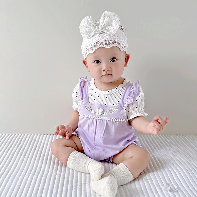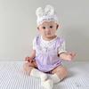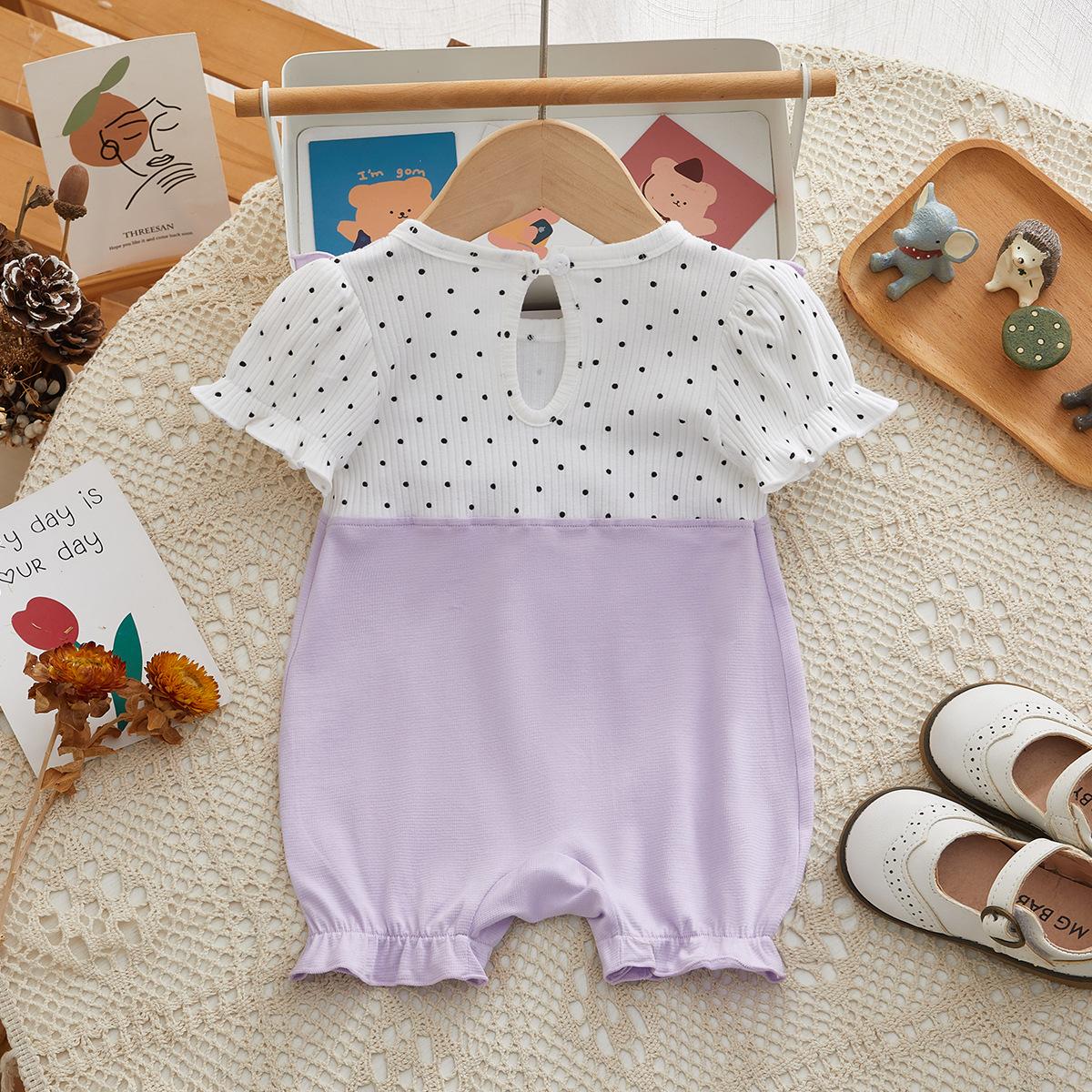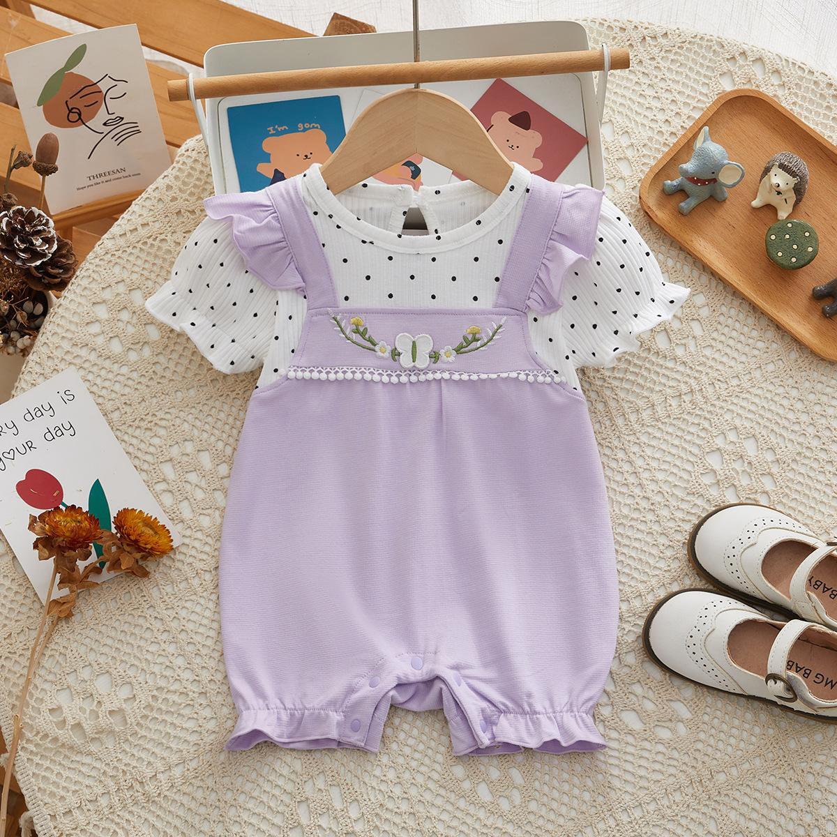 Ropa de verano para bebé, mono de bebé de manga corta con estampado floral morado, ropa de bebé de dos piezas, ropa fina de verano para bebé