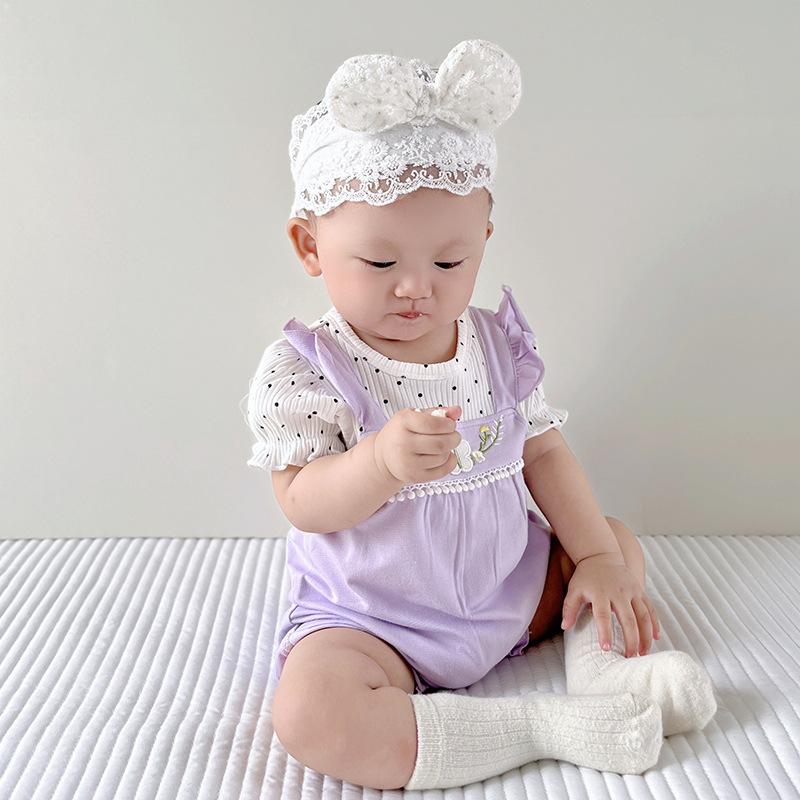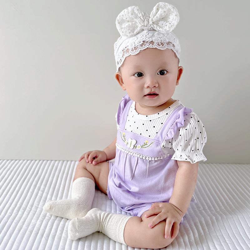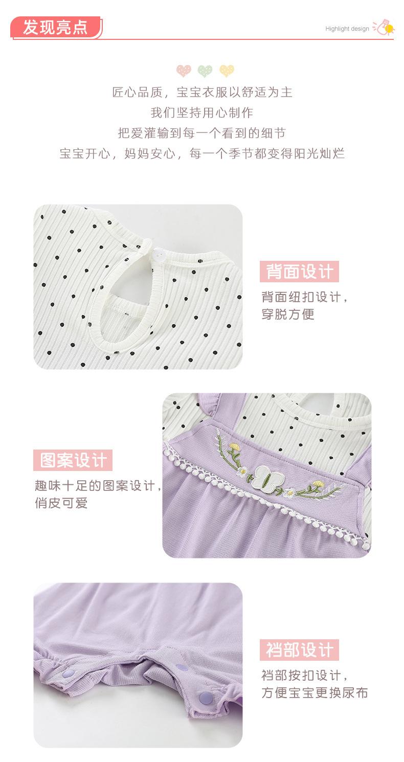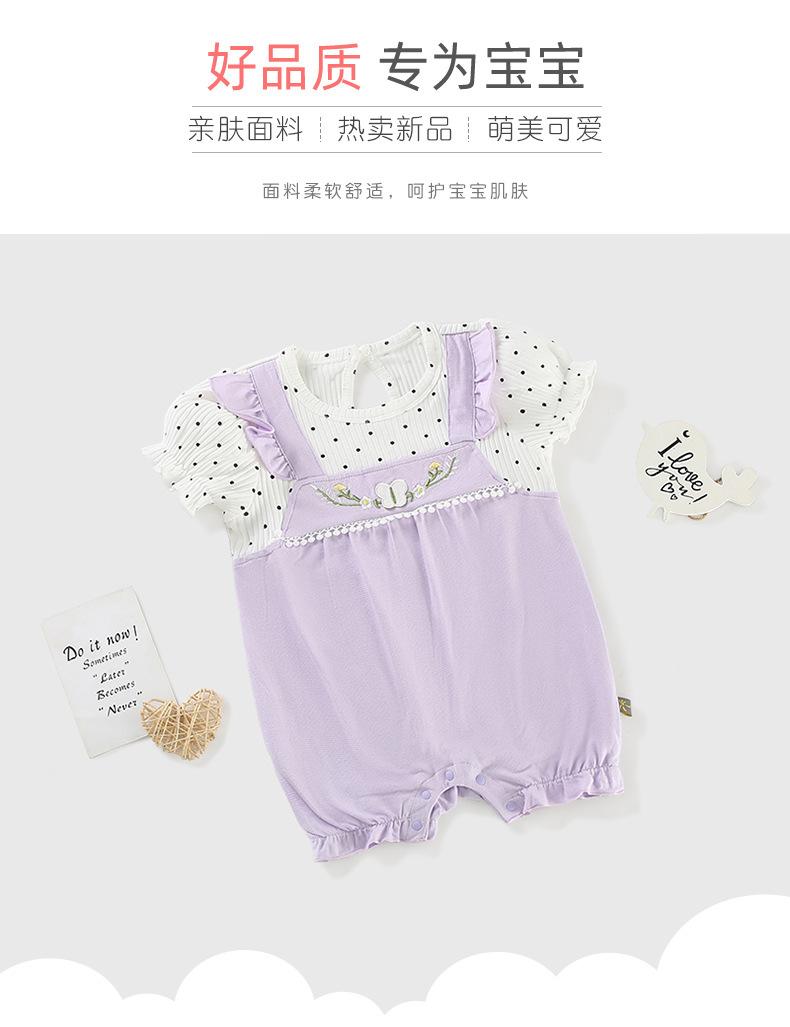 Ropa de verano para bebé, mono de bebé de manga corta con estampado floral morado, ropa de bebé de dos piezas, ropa fina de verano para bebé