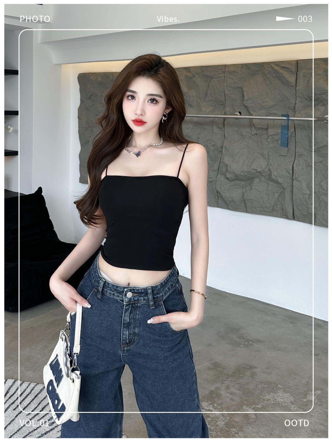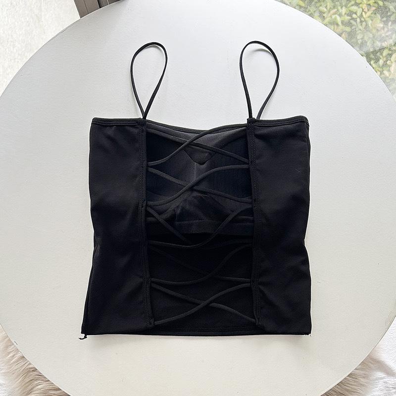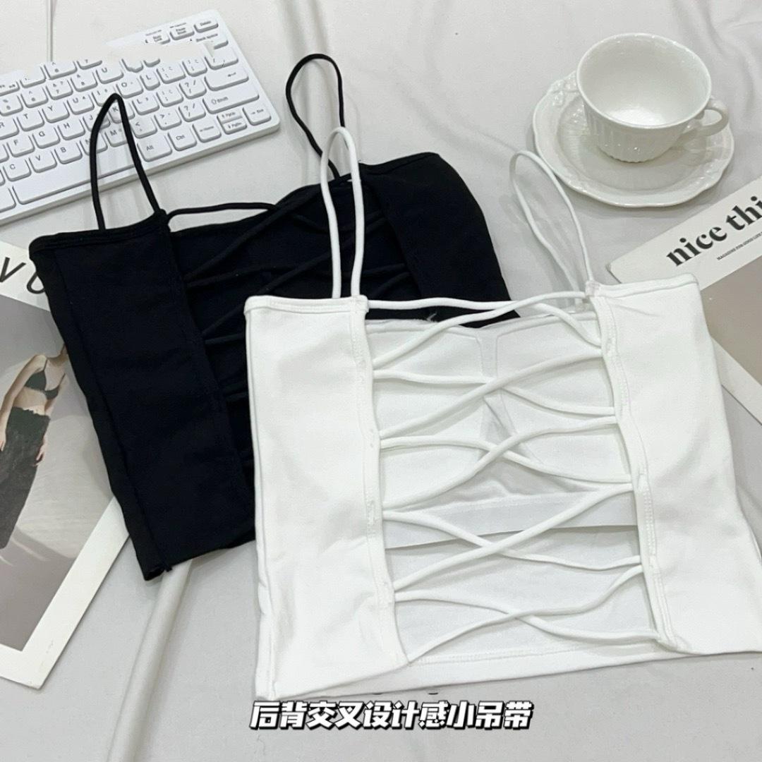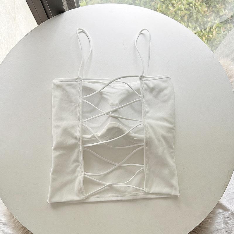 Camisola sexy de verano para mujer, con espalda cruzada y sin espalda, de algodón, con base exterior y almohadilla para el pecho.