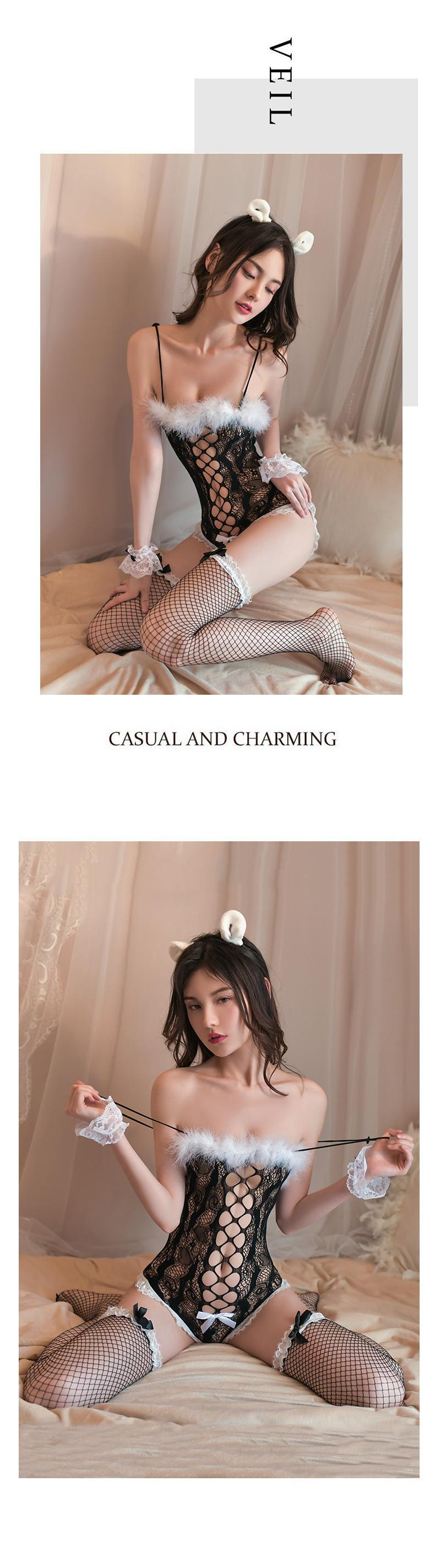Noche divertida lencería sexy sexy conejito lindo seductor uniforme de una pieza traje de malla medias sexys entrega de una pieza