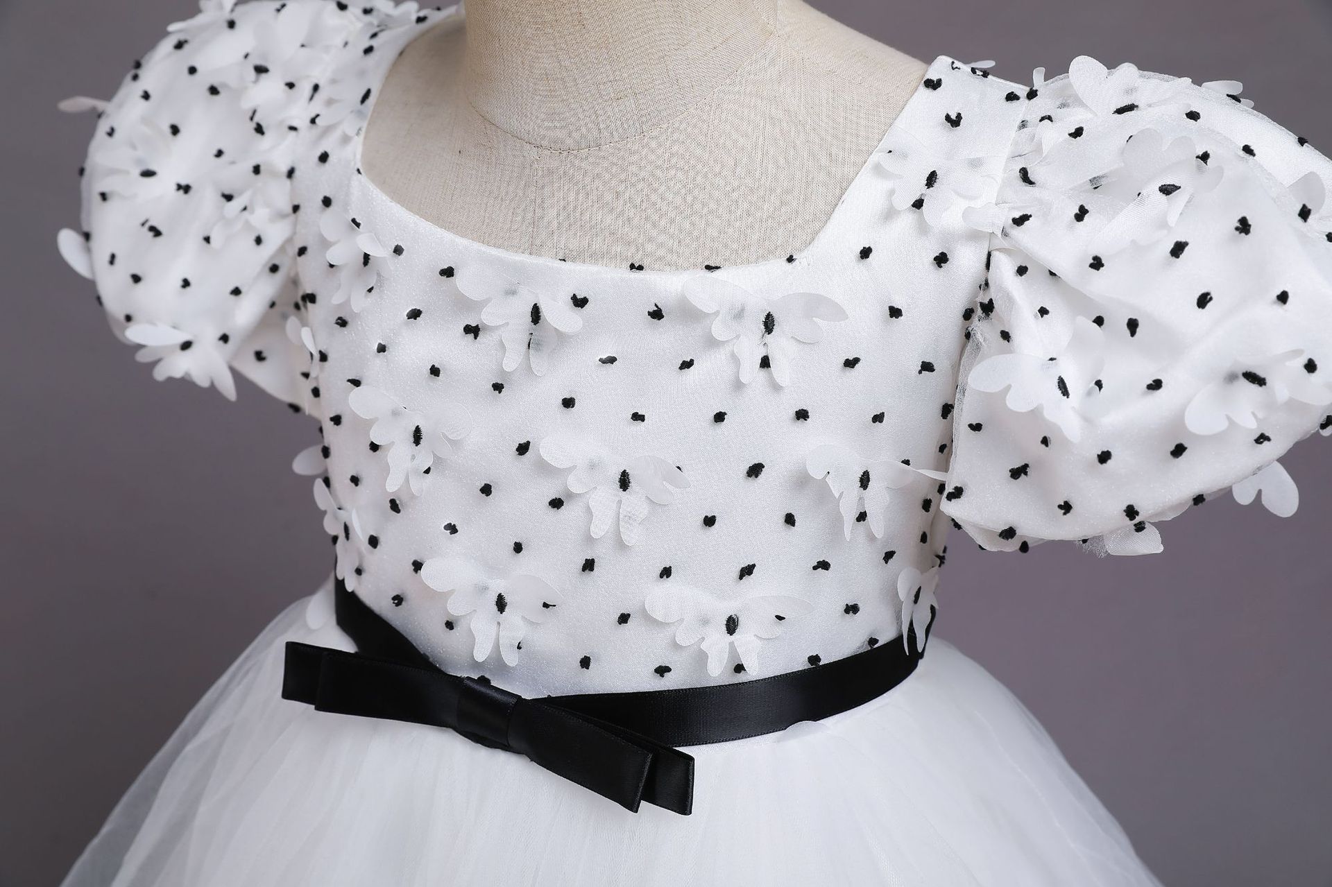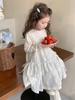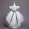 Vestido de Niña Blanco Princesa Europeo y Americano Algodón En Stock Niña Pequeña Comercio Exterior Vestido Infantil Vestido Infantil de Presentación con Cola