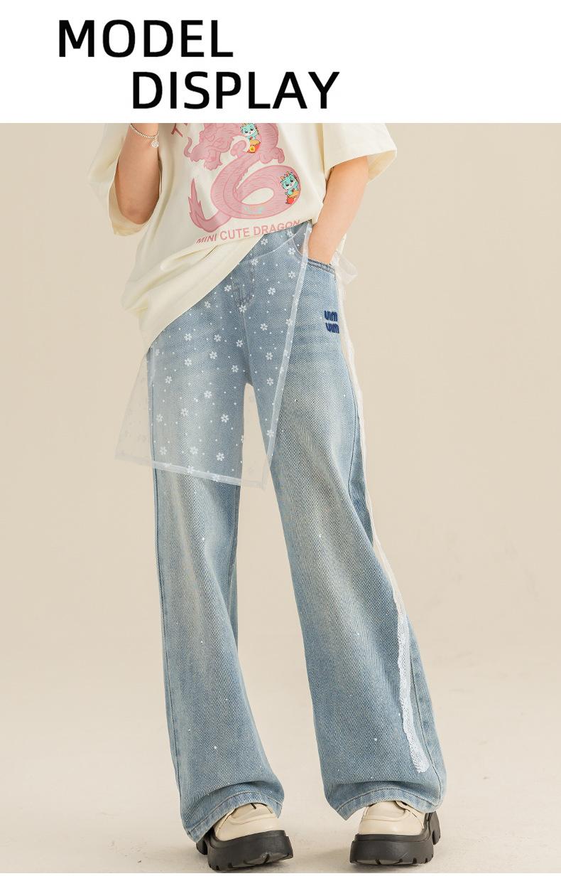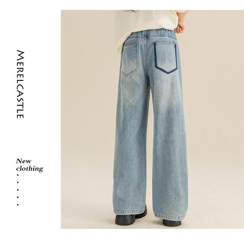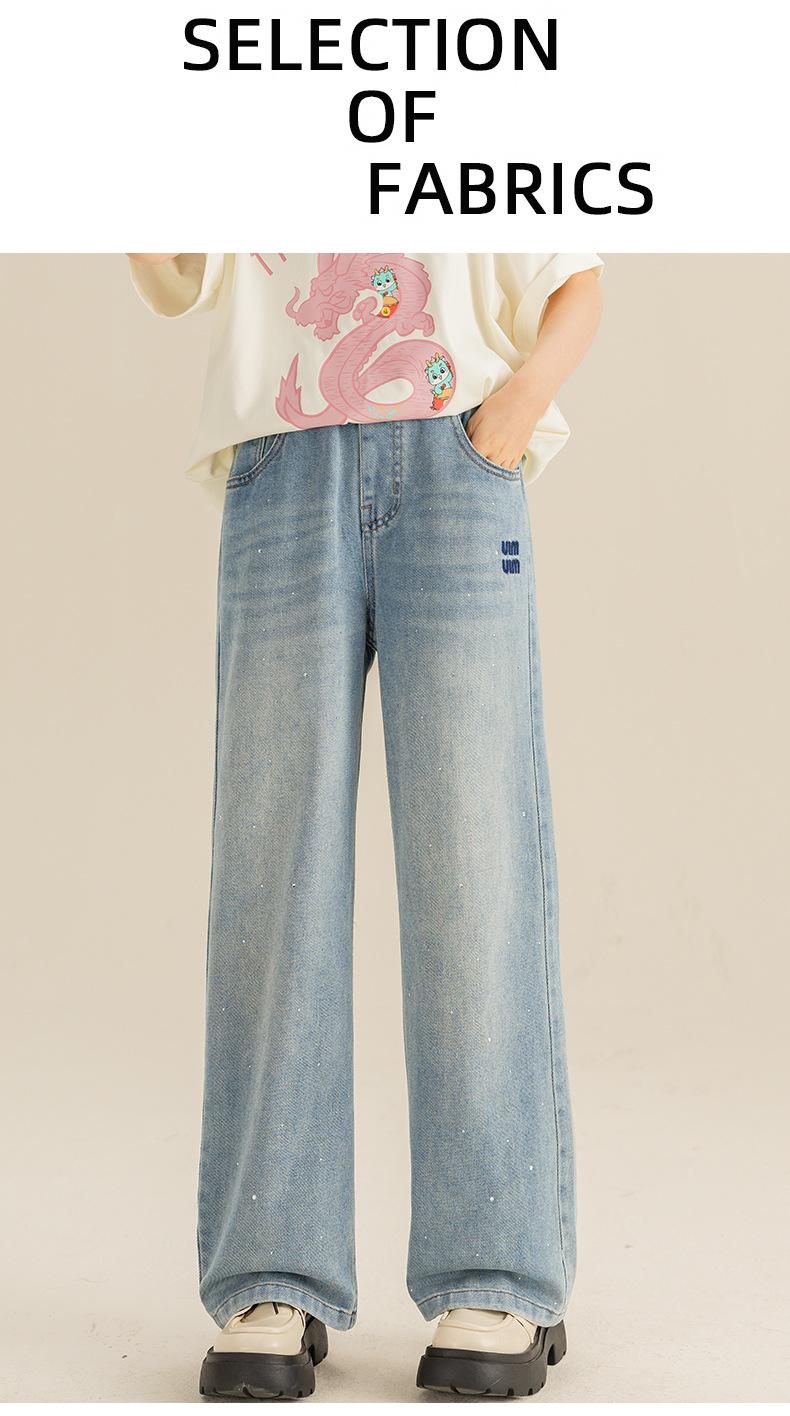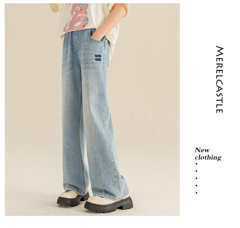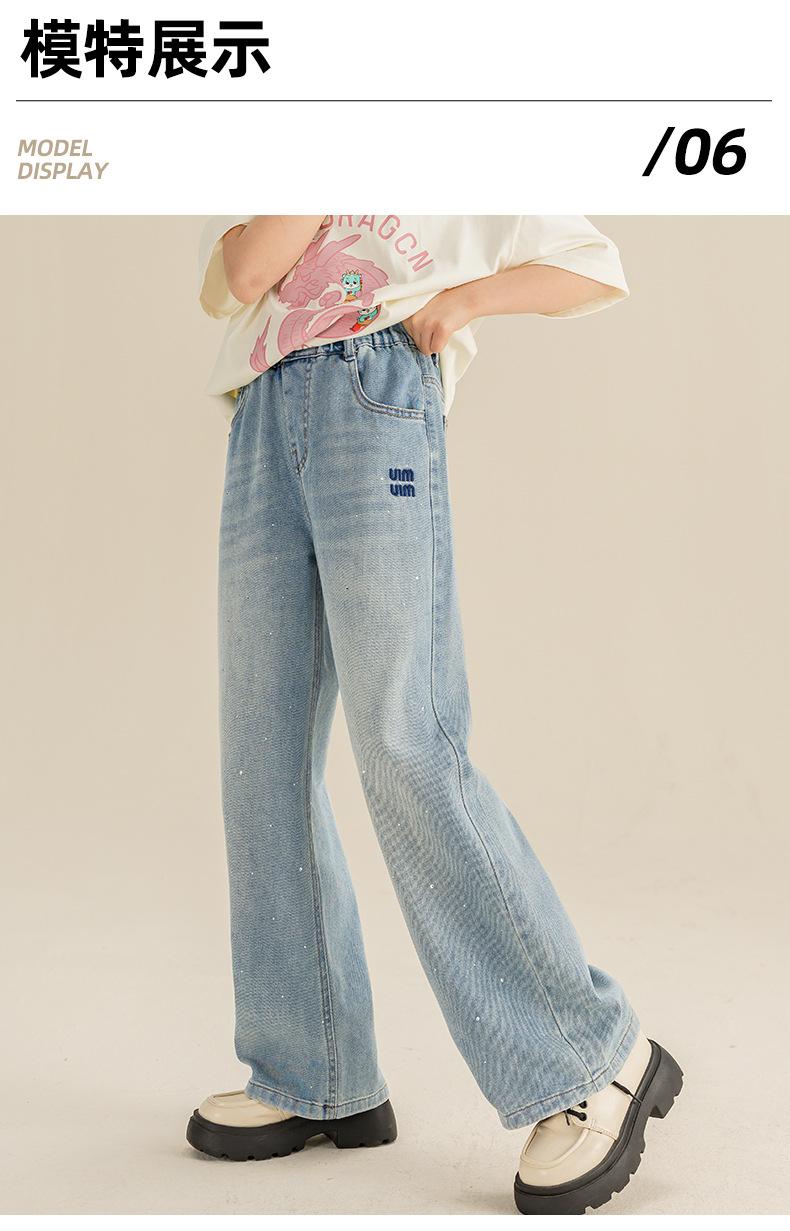 Pantalones para Niñas Primavera y Otoño 2024 Nueva Llegada Estilo Coreano Moda Pantalones de Mezclilla de Pierna Ancha Pantalones Casuales de Primavera para Niñas