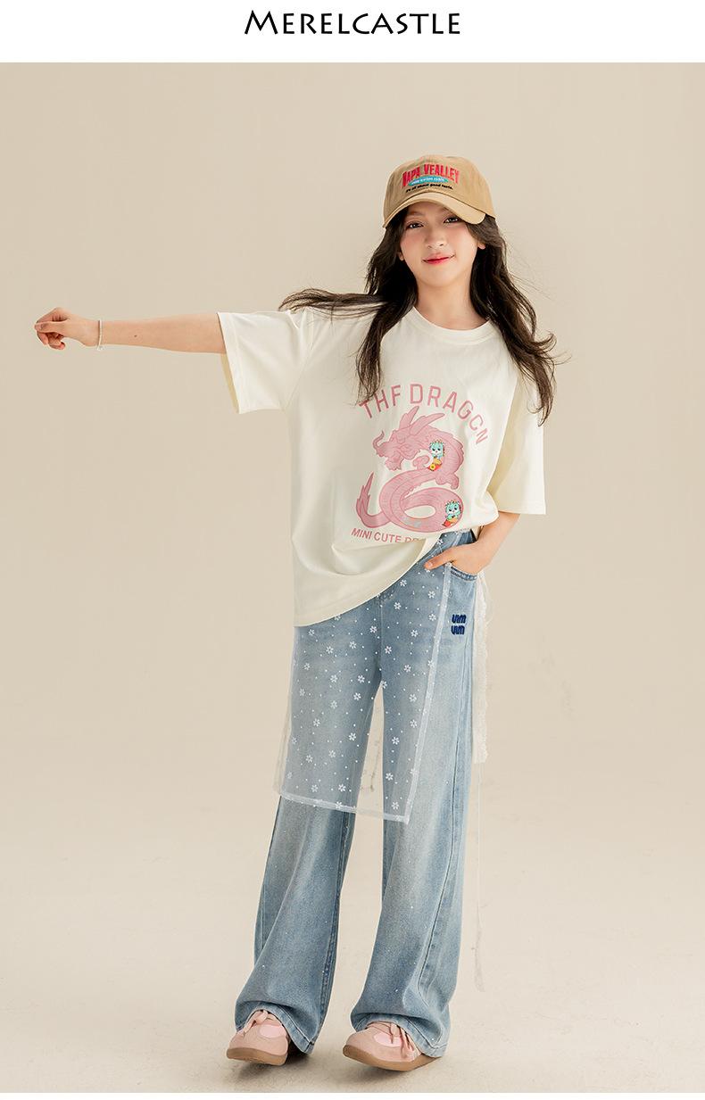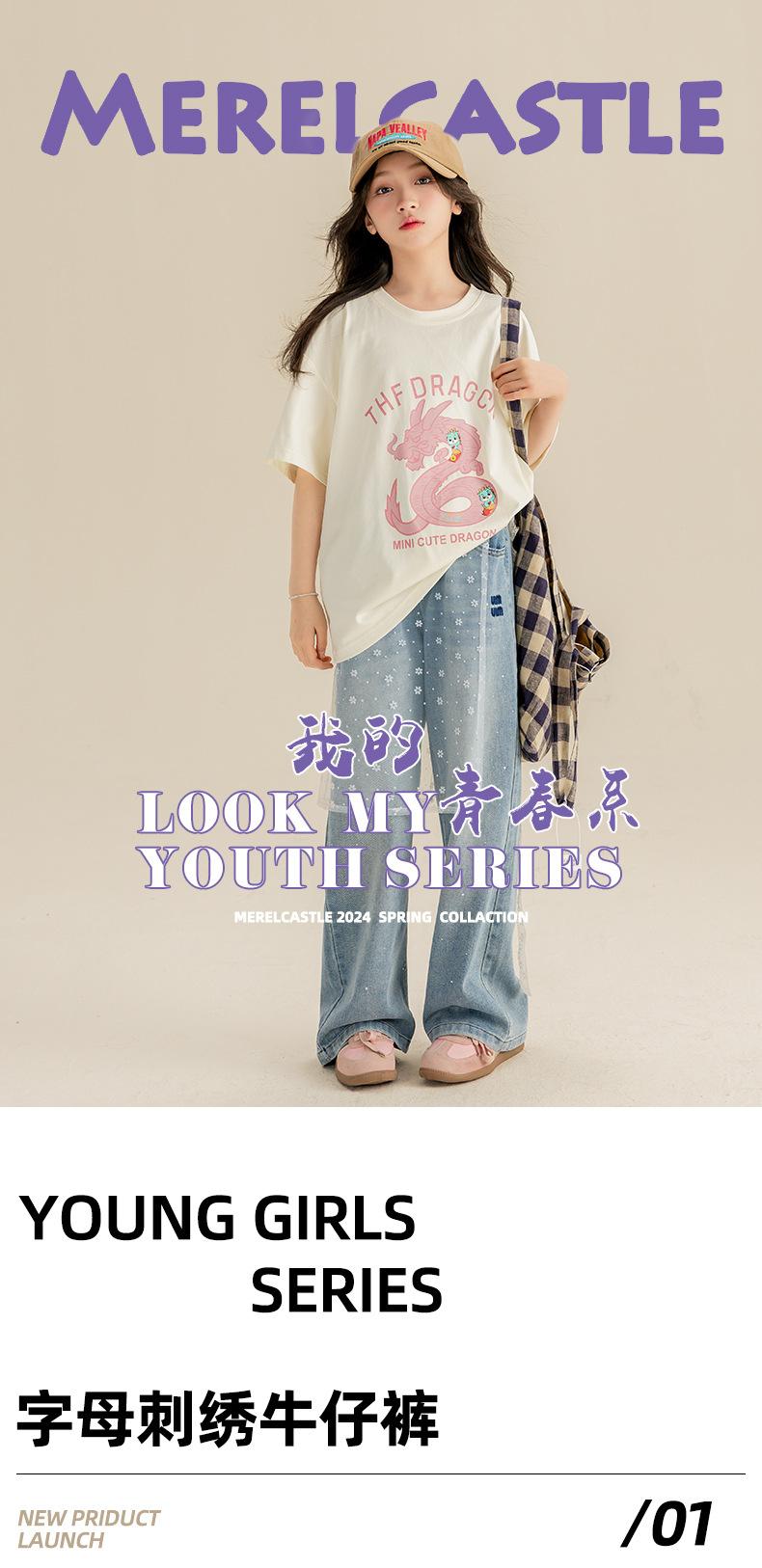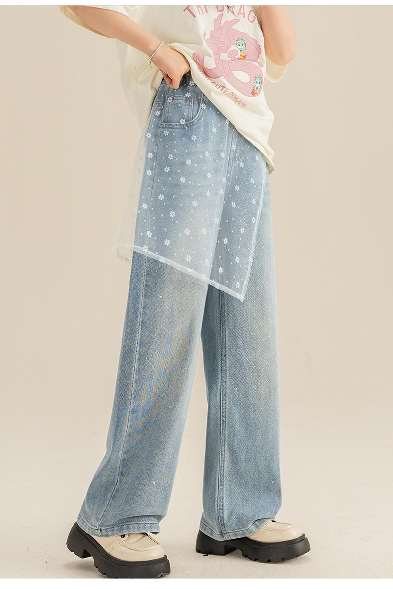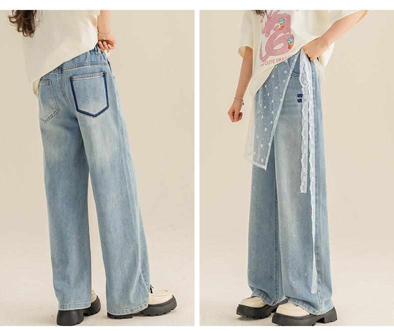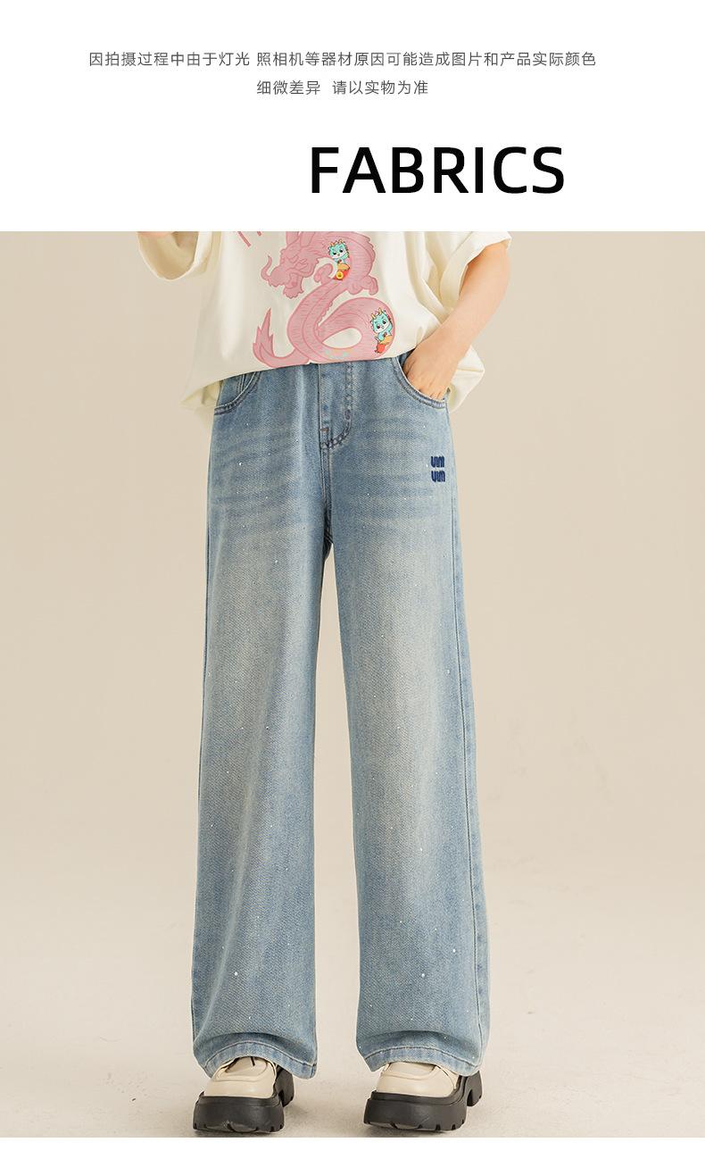 Pantalones para Niñas Primavera y Otoño 2024 Nueva Llegada Estilo Coreano Moda Pantalones de Mezclilla de Pierna Ancha Pantalones Casuales de Primavera para Niñas