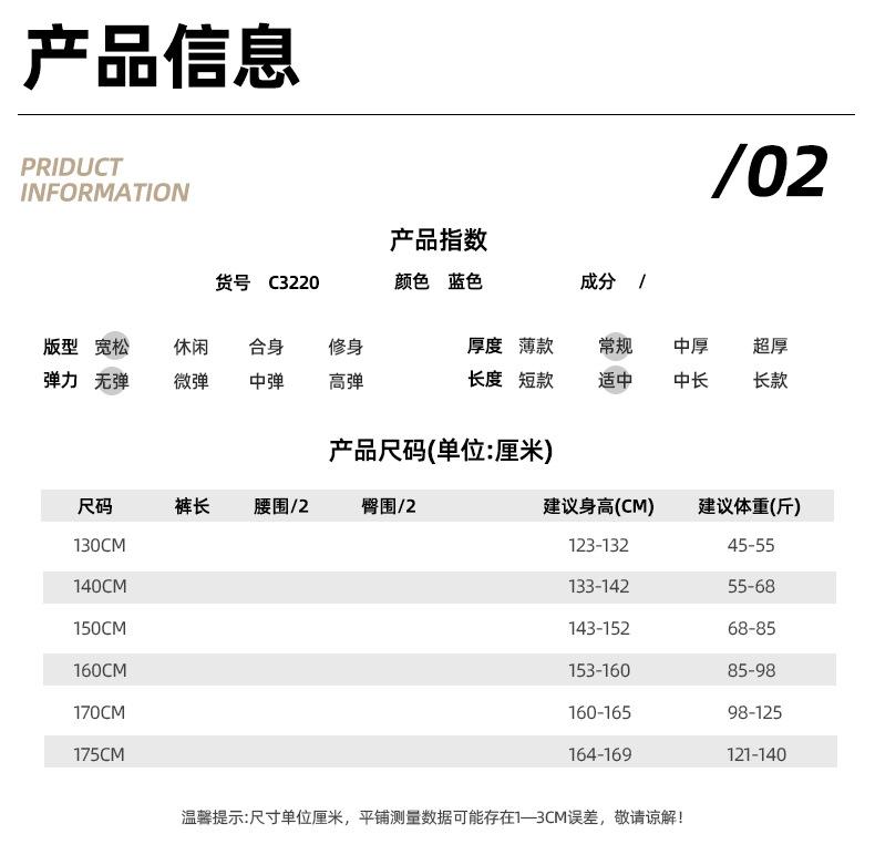 130cm, 140cm, 150cm, 160cm, 170cm, 175cm