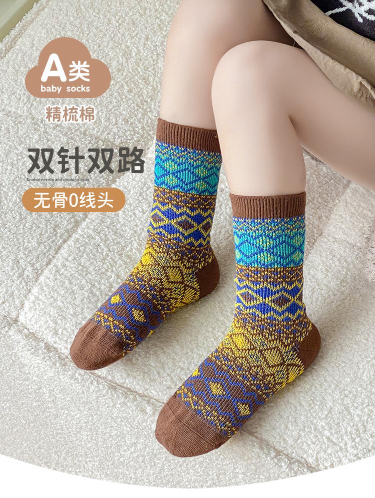 Calcetines de tubo medio para niños, de color liso, más terciopelo, gruesos y cálidos, de algodón peinado, para recién nacidos, clase A, venta al por mayor