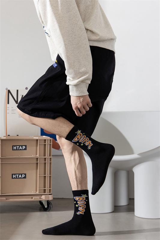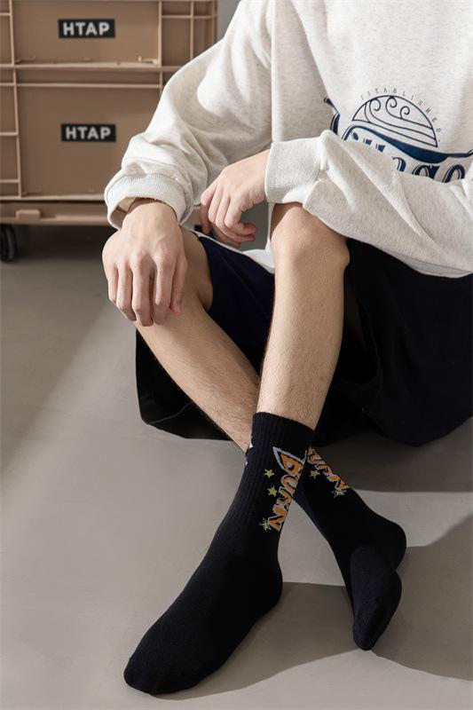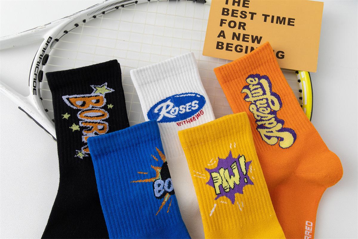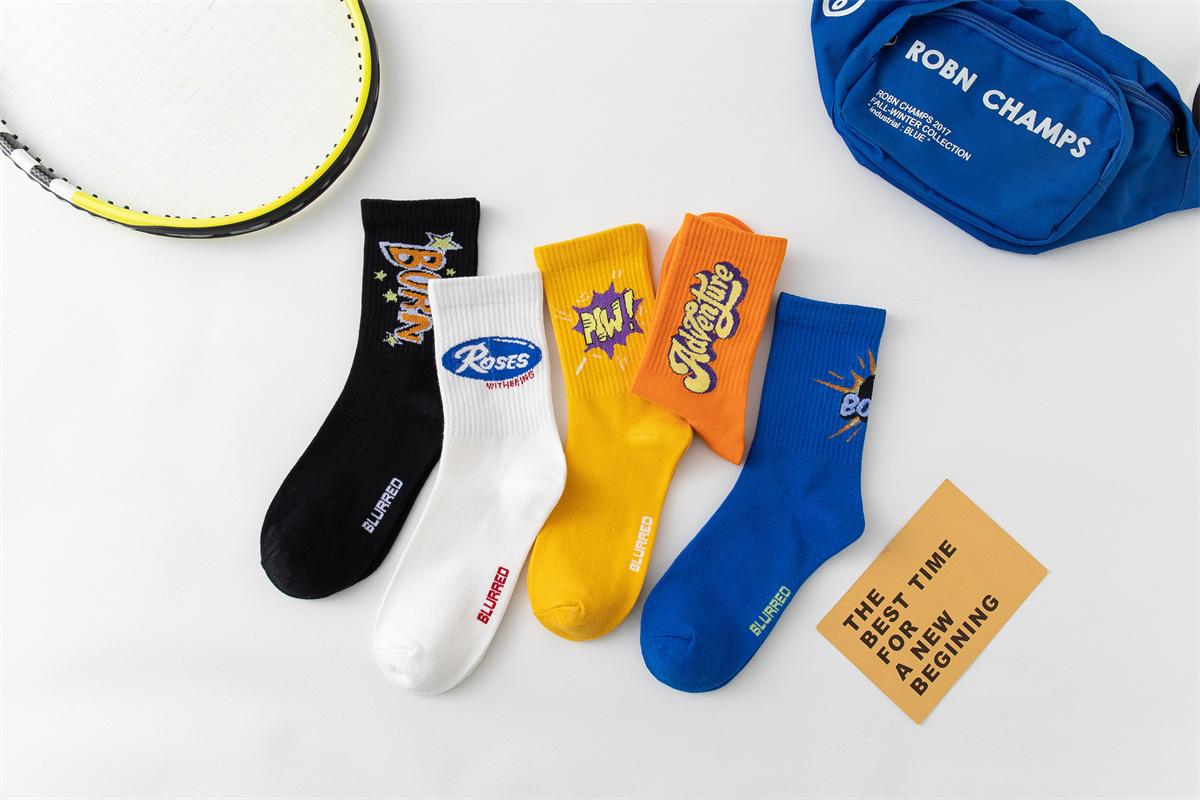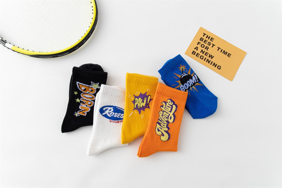Calcetines de algodón con letras para pareja, de primavera y verano, de caña alta, a la moda, para hombre y mujer, para estudiantes, de baloncesto y deportivos de moda.