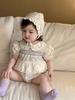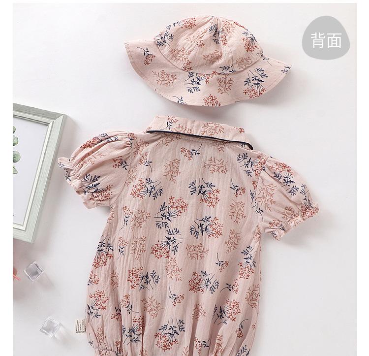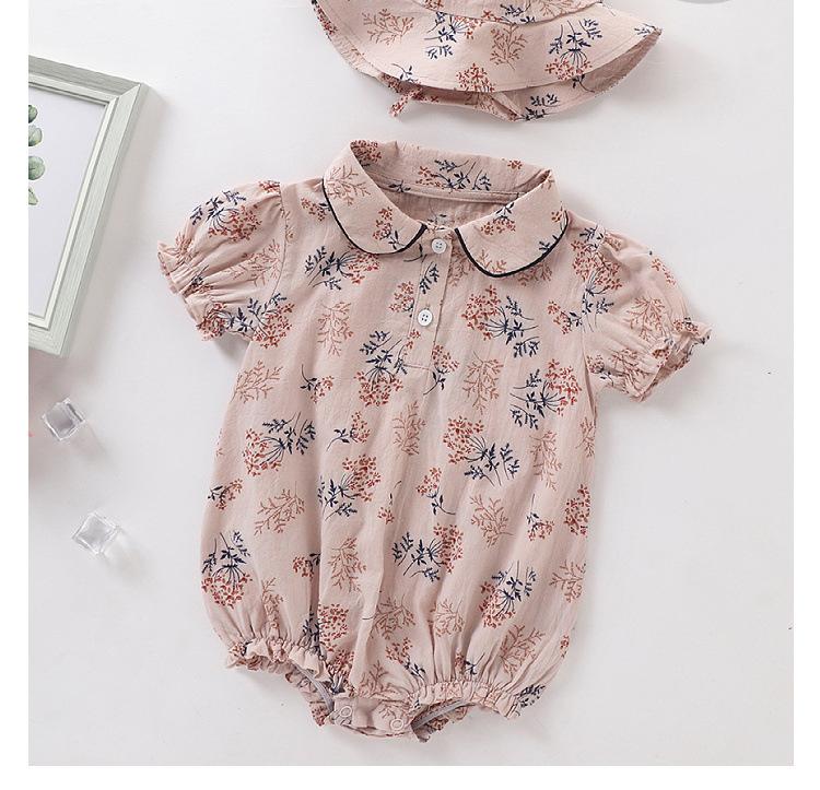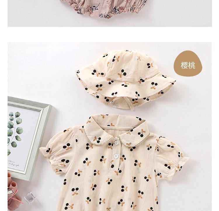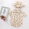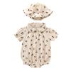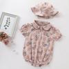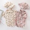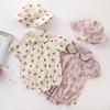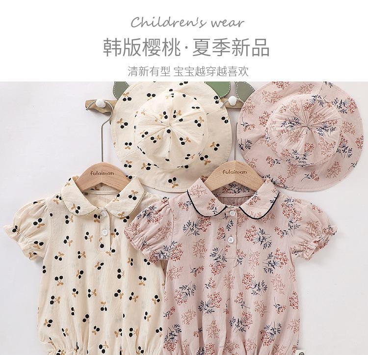 Ropa para niños estilo coreano 2022, mameluco enterizo floral de cerezas de manga corta para bebé niña con sombrero, algodón puro