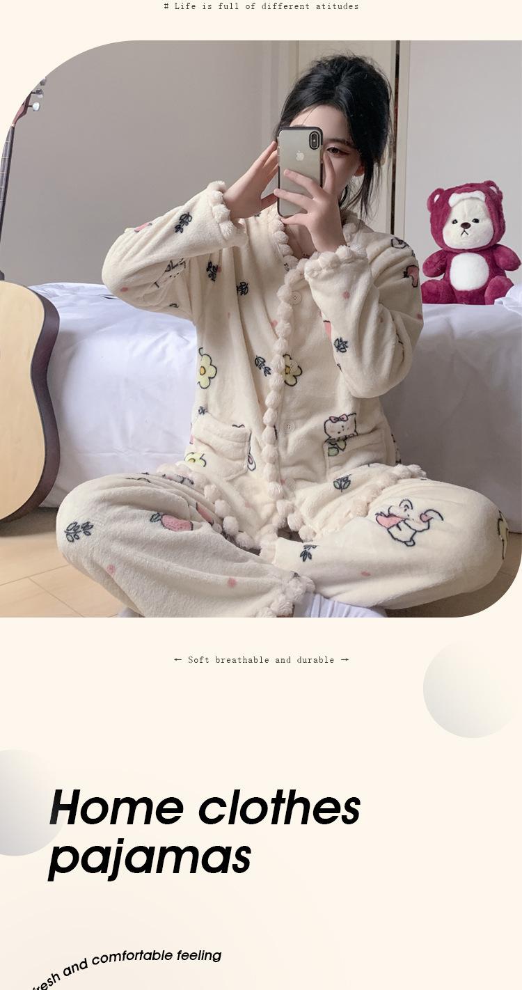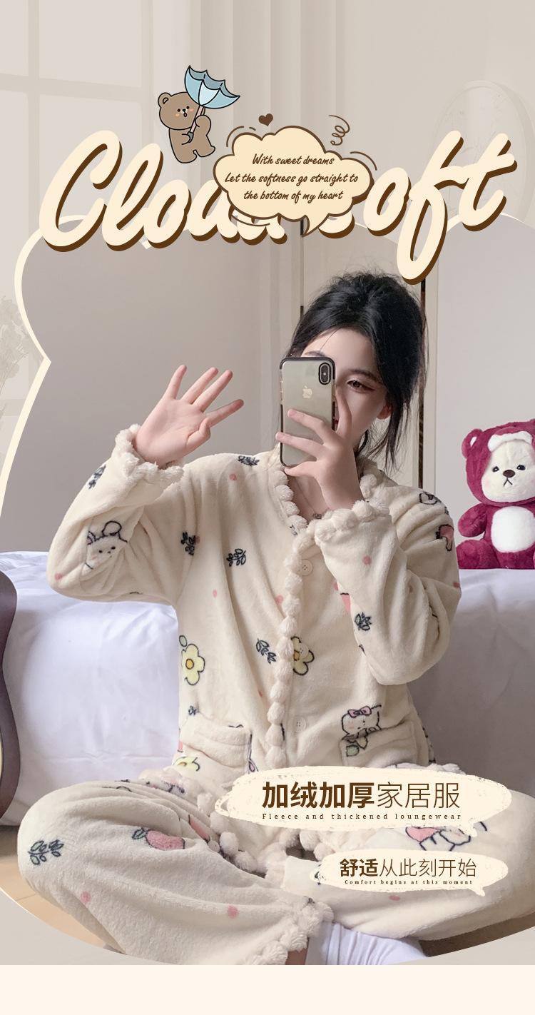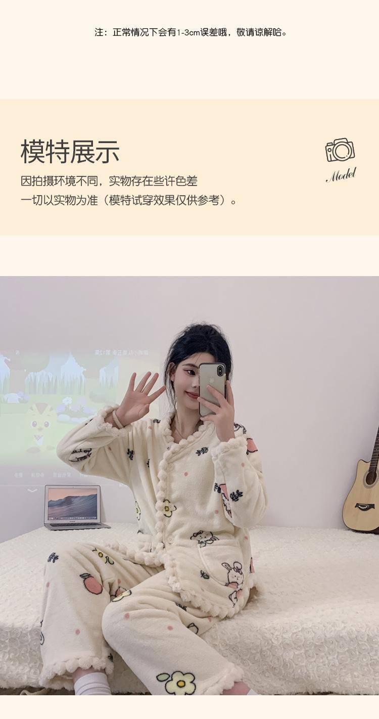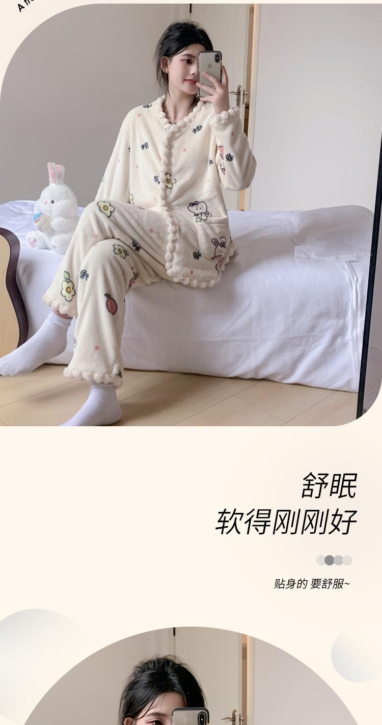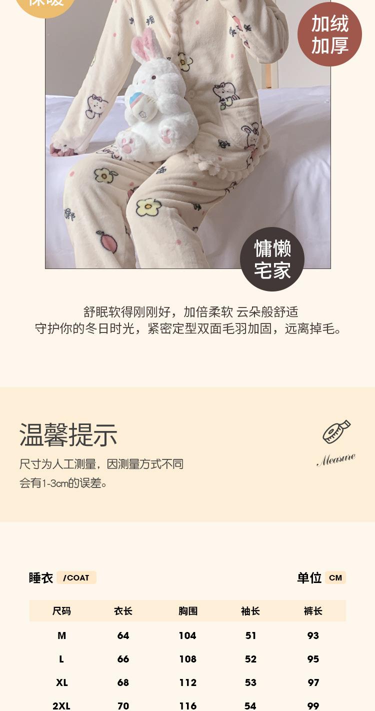 Pijama de forro polar coral de otoño e invierno para mujer, nuevo, grueso, lindo, de conejo dulce, estilo网红, traje de ropa para el hogar, venta al por mayor