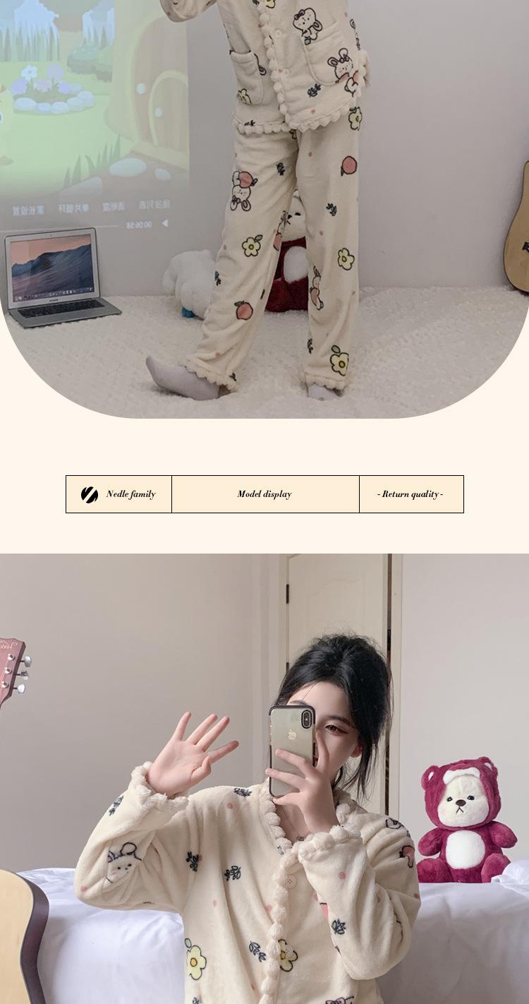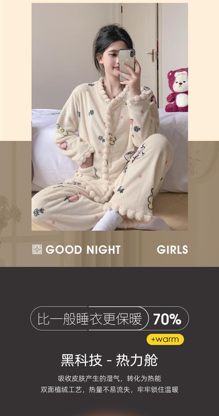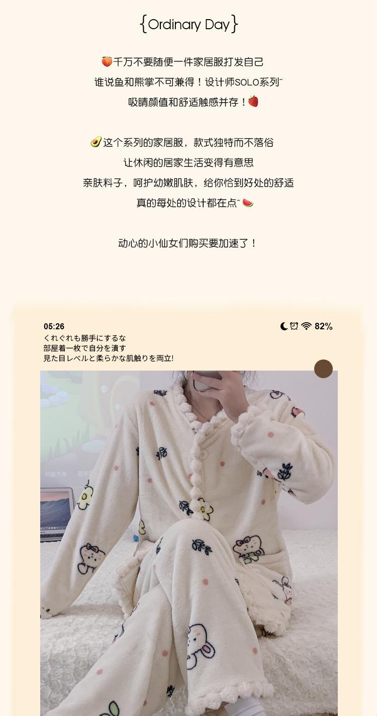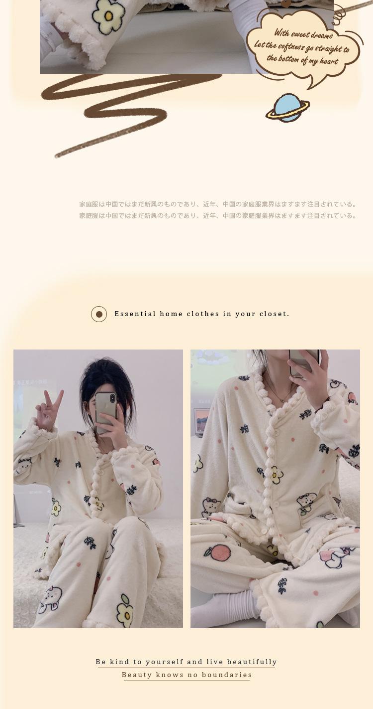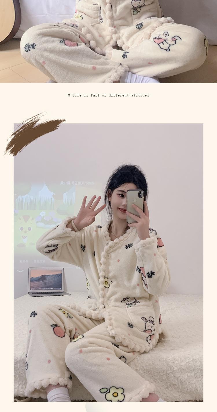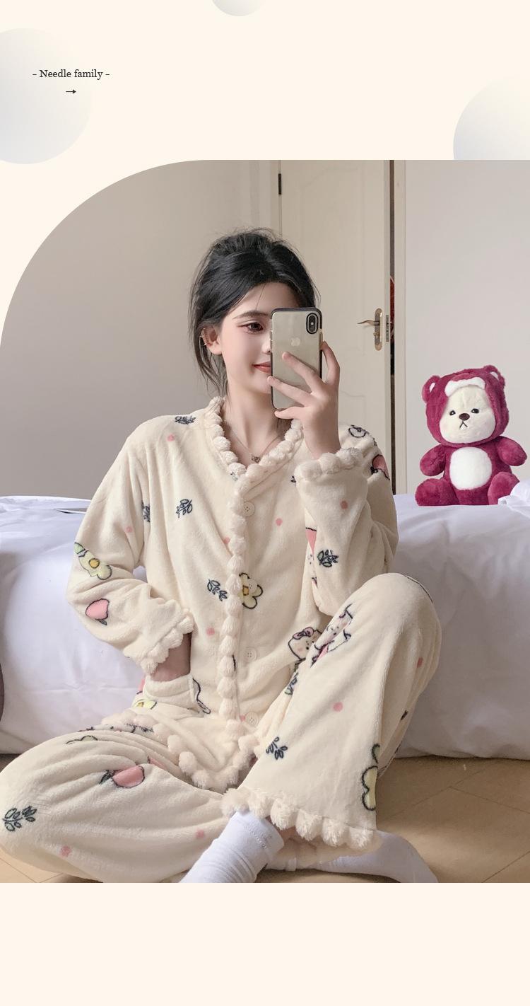 Pijama de forro polar coral de otoño e invierno para mujer, nuevo, grueso, lindo, de conejo dulce, estilo网红, traje de ropa para el hogar, venta al por mayor